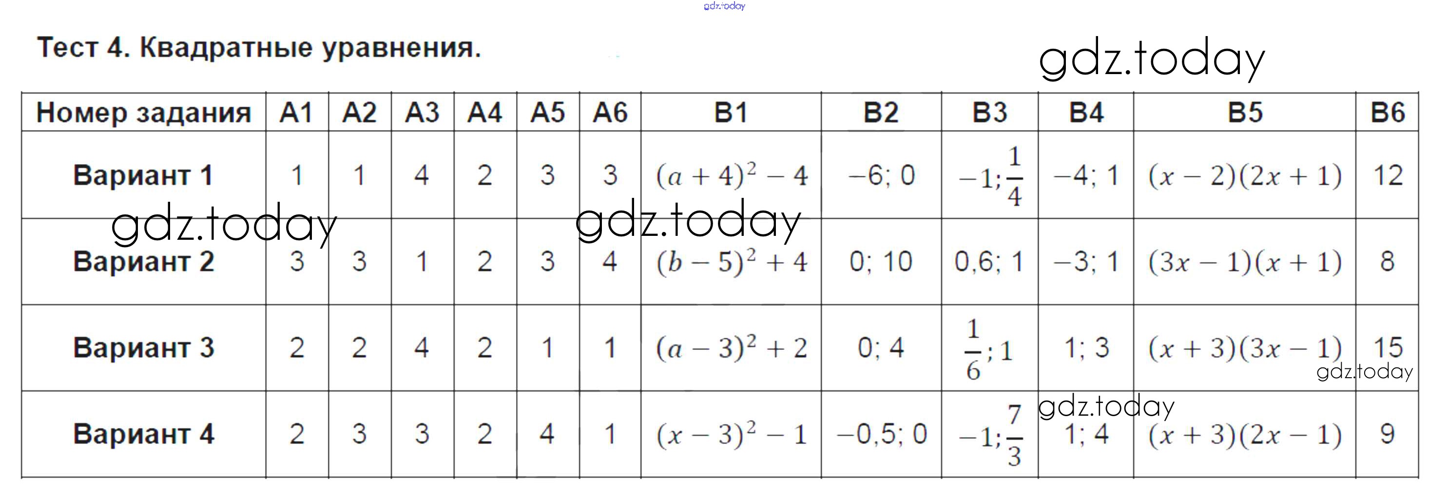 На страницах сайта gdz.today вы найдете учебный и вспомогательный материал, направленный на улучшения знаний школьной программы. ГДЗ - онлайн мир знаний Решение к тестам 4 Тематическим тестам по Алгебре для 8 класса Чулков, Струков Просвещение МГУ - школе 2012