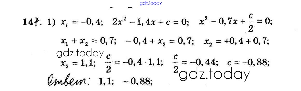 Ответы к Вариант 1 Решение к упражнениям 147 Дидактическим материалам по Алгебре для 8 класса Мерзляк, Полонский Вентана-граф Алгоритм успеха 2016