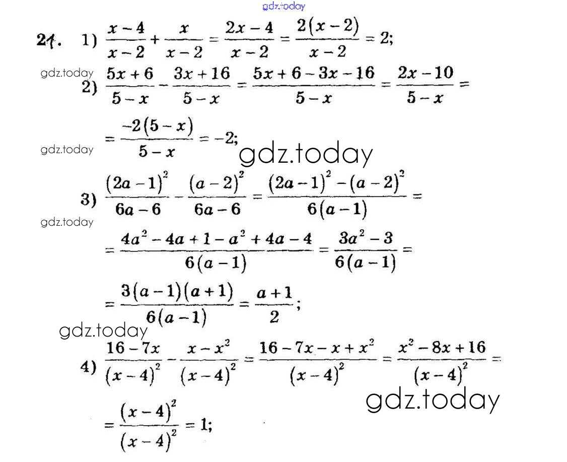 На страницах сайта gdz.today вы найдете учебный и вспомогательный материал, направленный на улучшения знаний школьной программы. ГДЗ - онлайн мир знаний Вариант 1 Решение к упражнениям 21 Дидактическим материалам по Алгебре для 8 класса Мерзляк, Полонский Вентана-граф Алгоритм успеха 2016