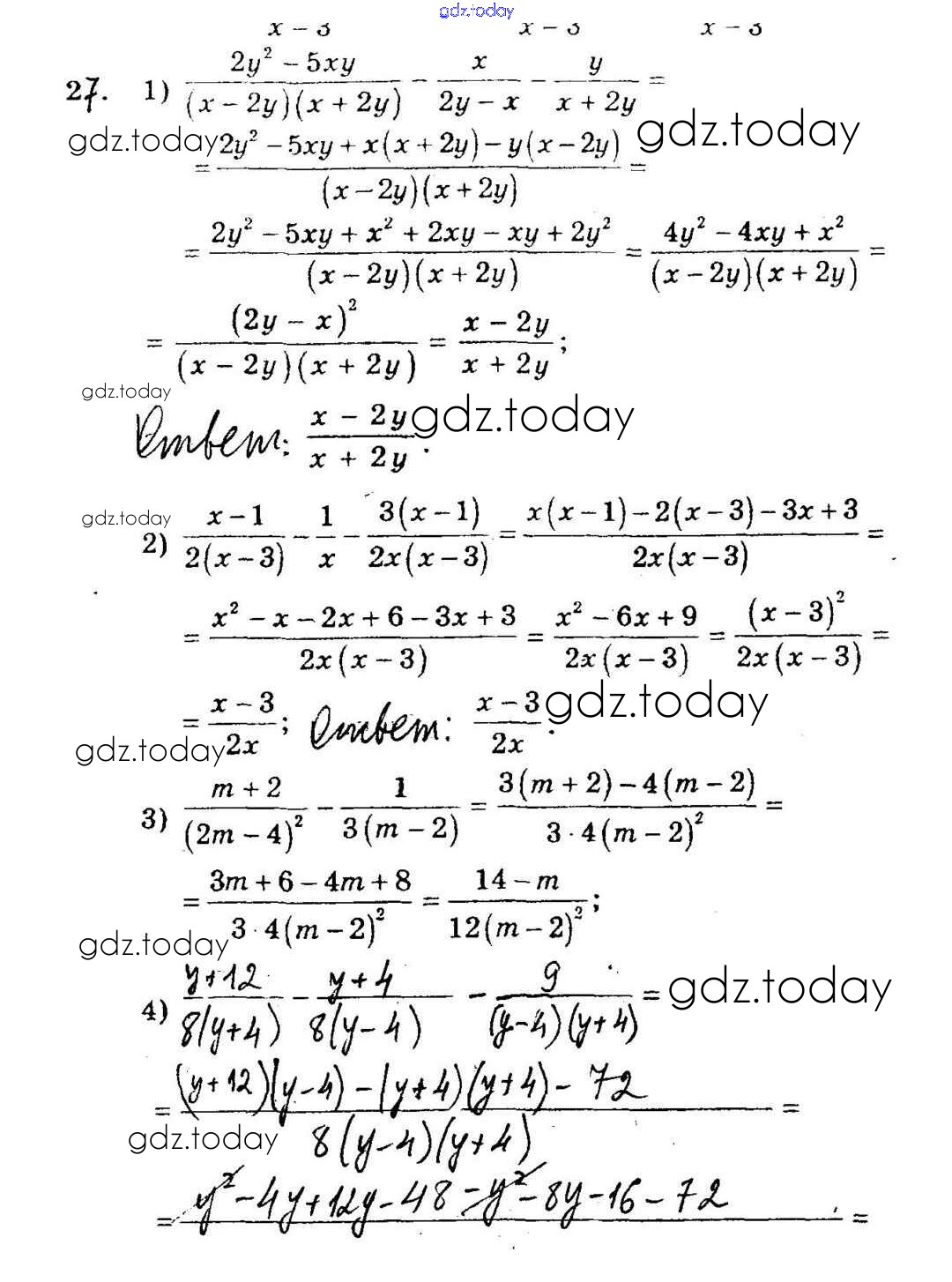 Ответы к Вариант 2 Решение к упражнениям 27 Дидактическим материалам по Алгебре для 8 класса Мерзляк, Полонский Вентана-граф Алгоритм успеха 2016