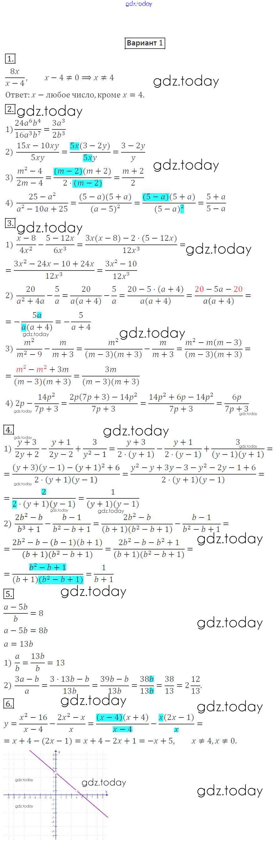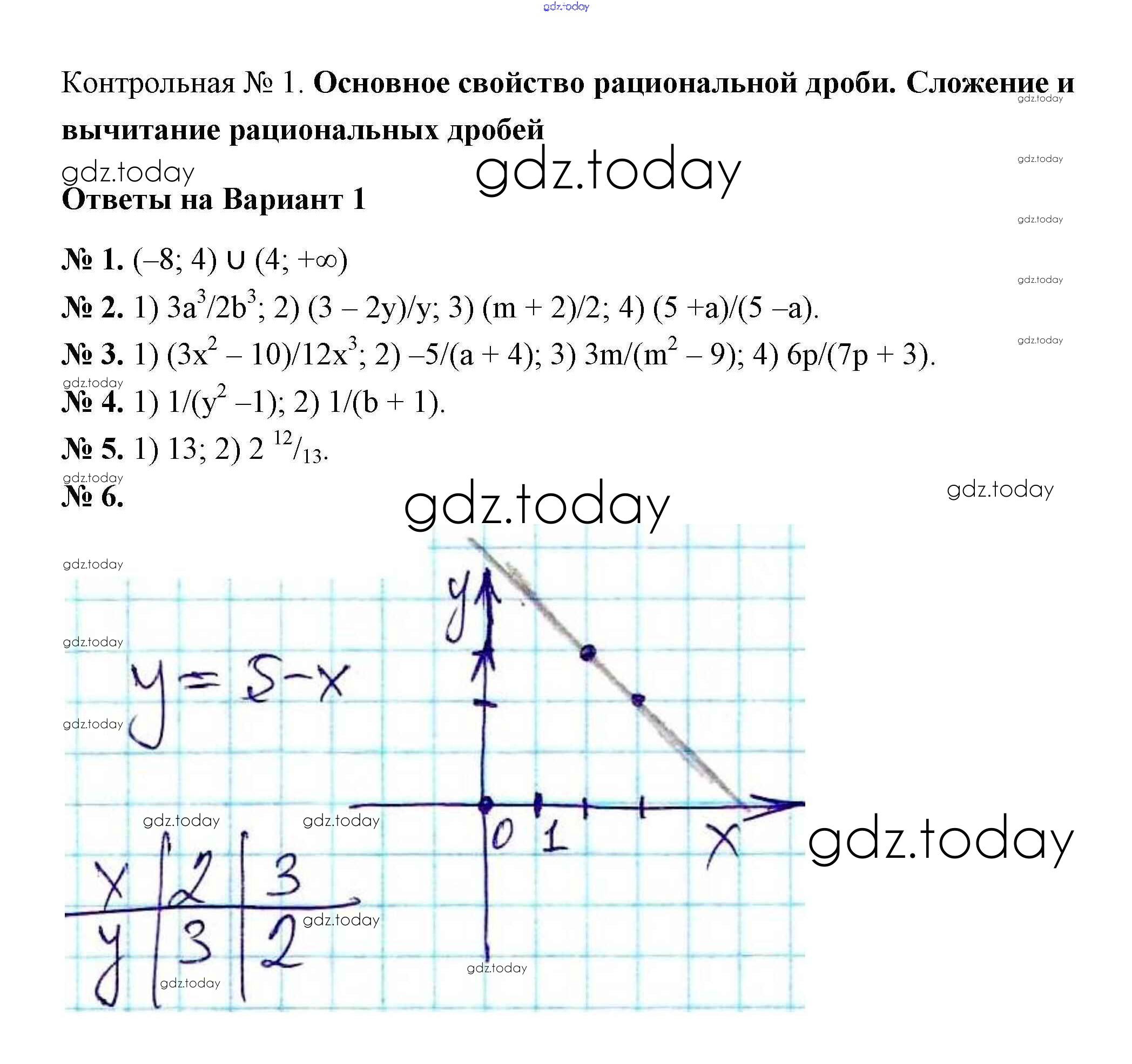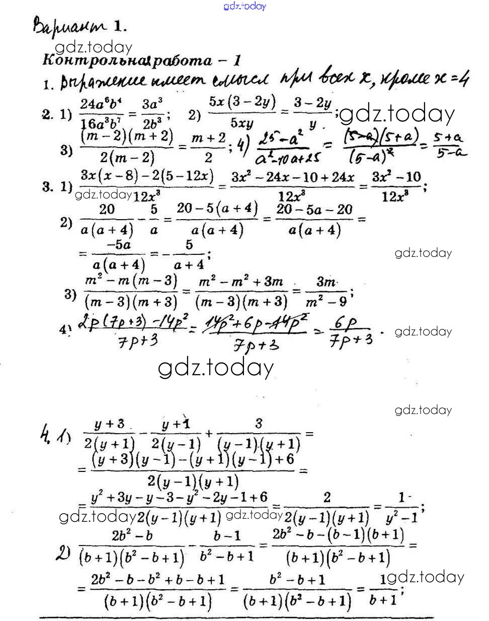 На страницах сайта gdz.today вы найдете учебный и вспомогательный материал, направленный на улучшения знаний школьной программы. ГДЗ - онлайн мир знаний КР-1. Основное свойство рациональной дроби. Сложение и вычитание рациональных дробей Решение к контрольным работам вариант 1 Дидактическим материалам по Алгебре для 8 класса Мерзляк, Полонский Вентана-граф Алгоритм успеха 2016