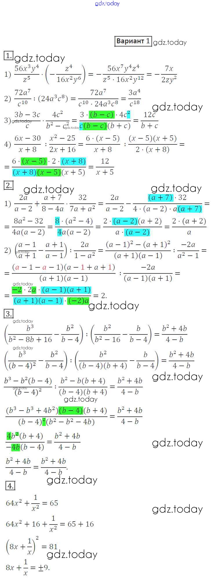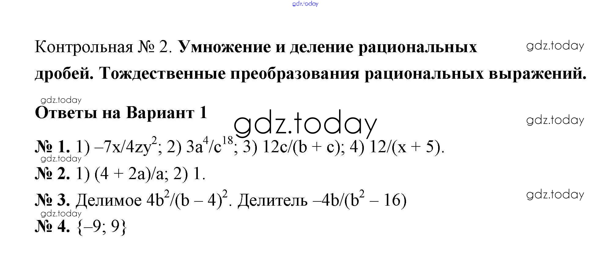 Ответы к КР-2. Умножение и деление рациональных дробей. Тождественные преобразования рациональных дробей Решение к контрольным работам вариант 1 Дидактическим материалам по Алгебре для 8 класса Мерзляк, Полонский Вентана-граф Алгоритм успеха 2016