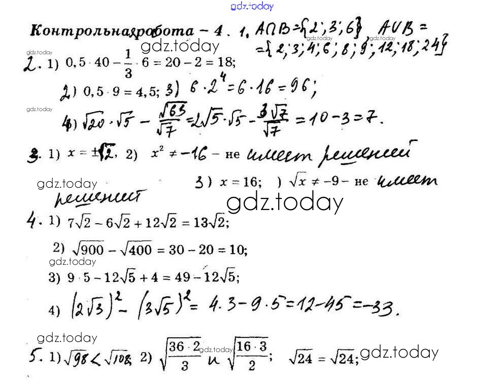 На страницах сайта gdz.today вы найдете учебный и вспомогательный материал, направленный на улучшения знаний школьной программы. ГДЗ - онлайн мир знаний КР-4. Квадратные корни Решение к контрольным работам вариант 1 Дидактическим материалам по Алгебре для 8 класса Мерзляк, Полонский Вентана-граф Алгоритм успеха 2016