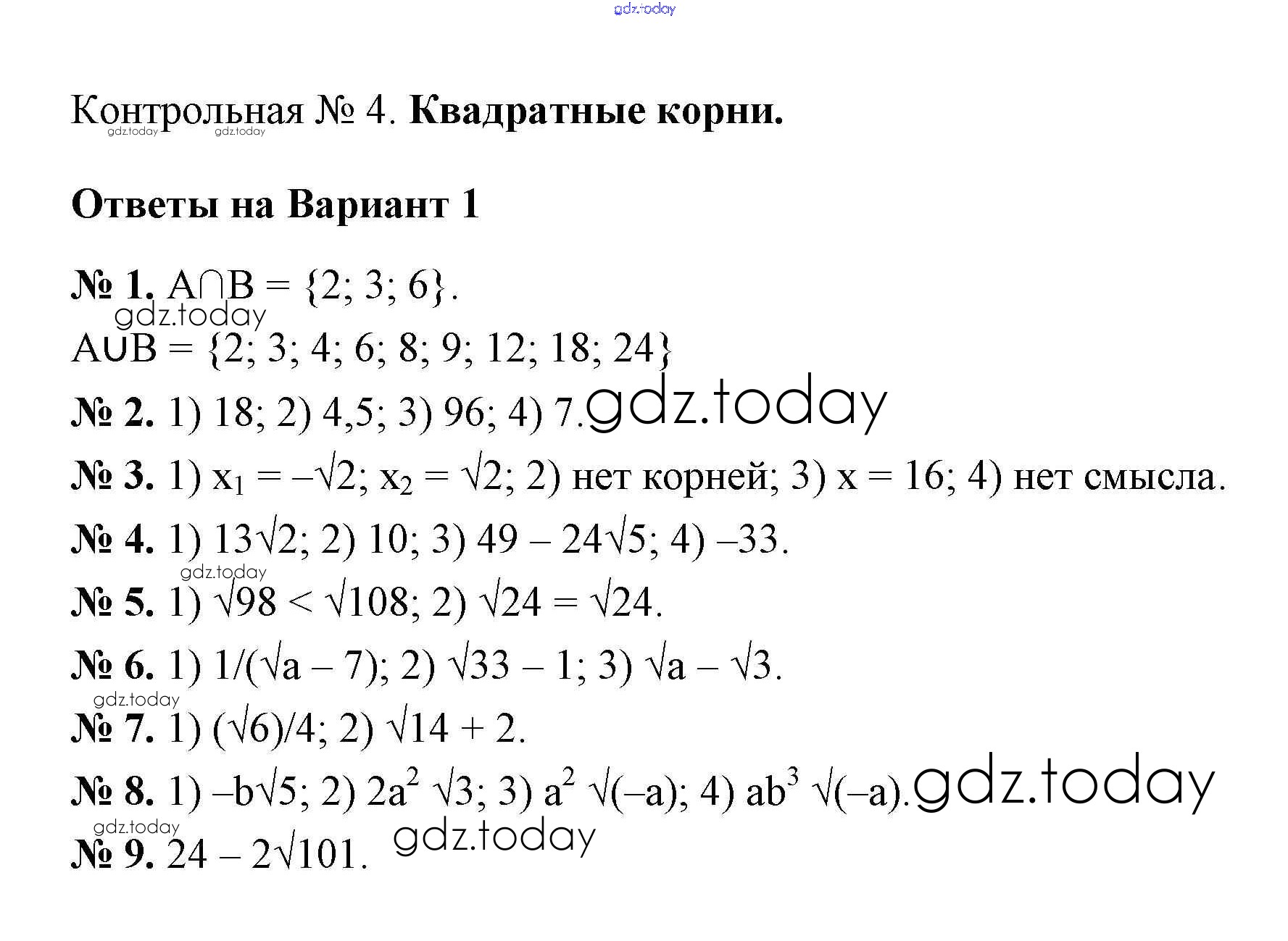 Ответы к КР-4. Квадратные корни Решение к контрольным работам вариант 1 Дидактическим материалам по Алгебре для 8 класса Мерзляк, Полонский Вентана-граф Алгоритм успеха 2016
