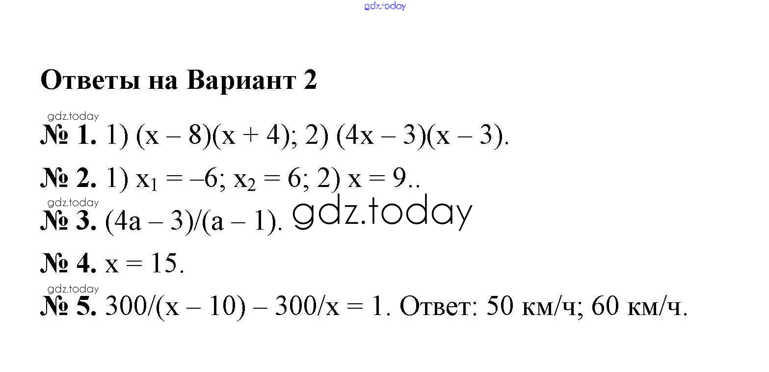Ответы к КР-6. Квадратный трехчлен. Решение уравнений, сводящихся к квадратным уравнениям. Решение задач с помощью рациональных уравнений Решение к контрольным работам вариант 2 Дидактическим материалам по Алгебре для 8 класса Мерзляк, Полонский Вентана-граф Алгоритм успеха 2016