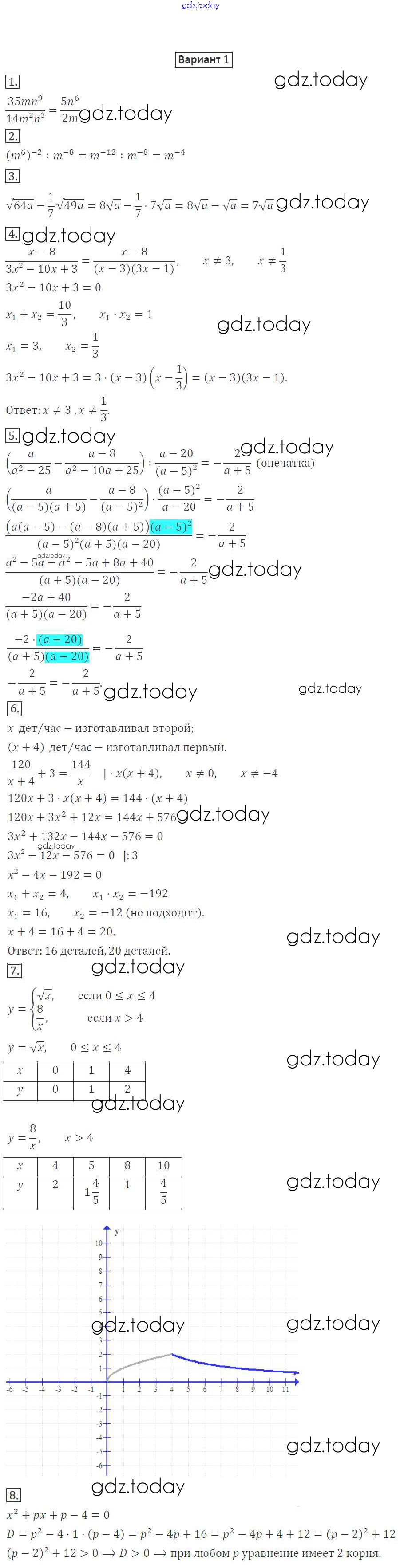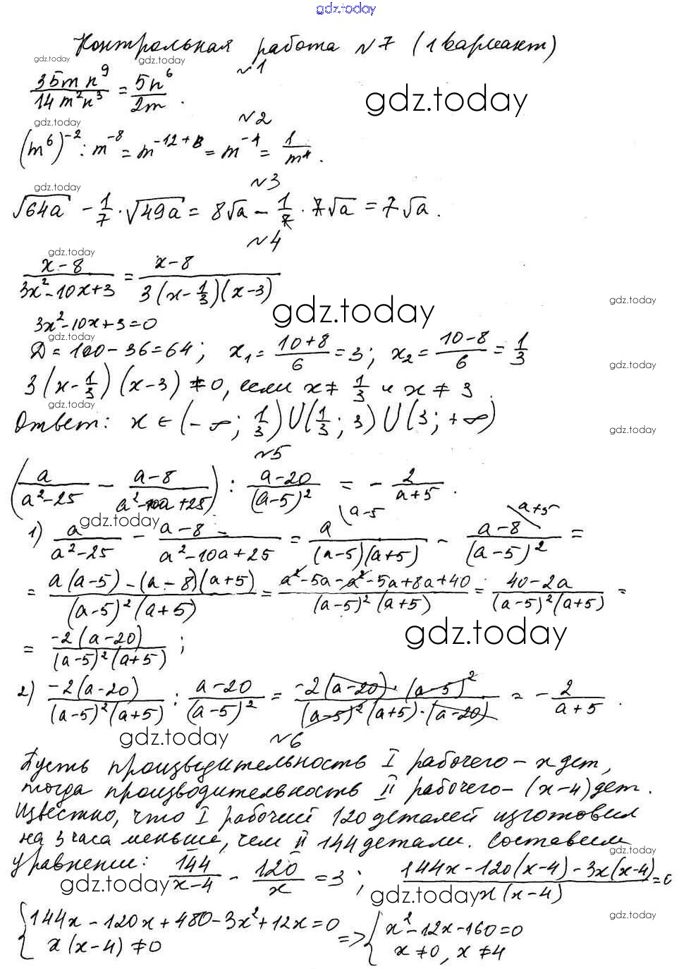 На страницах сайта gdz.today вы найдете учебный и вспомогательный материал, направленный на улучшения знаний школьной программы. ГДЗ - онлайн мир знаний КР-7. Обобщение и систематизация знаний учащихся Решение к контрольным работам вариант 1 Дидактическим материалам по Алгебре для 8 класса Мерзляк, Полонский Вентана-граф Алгоритм успеха 2016