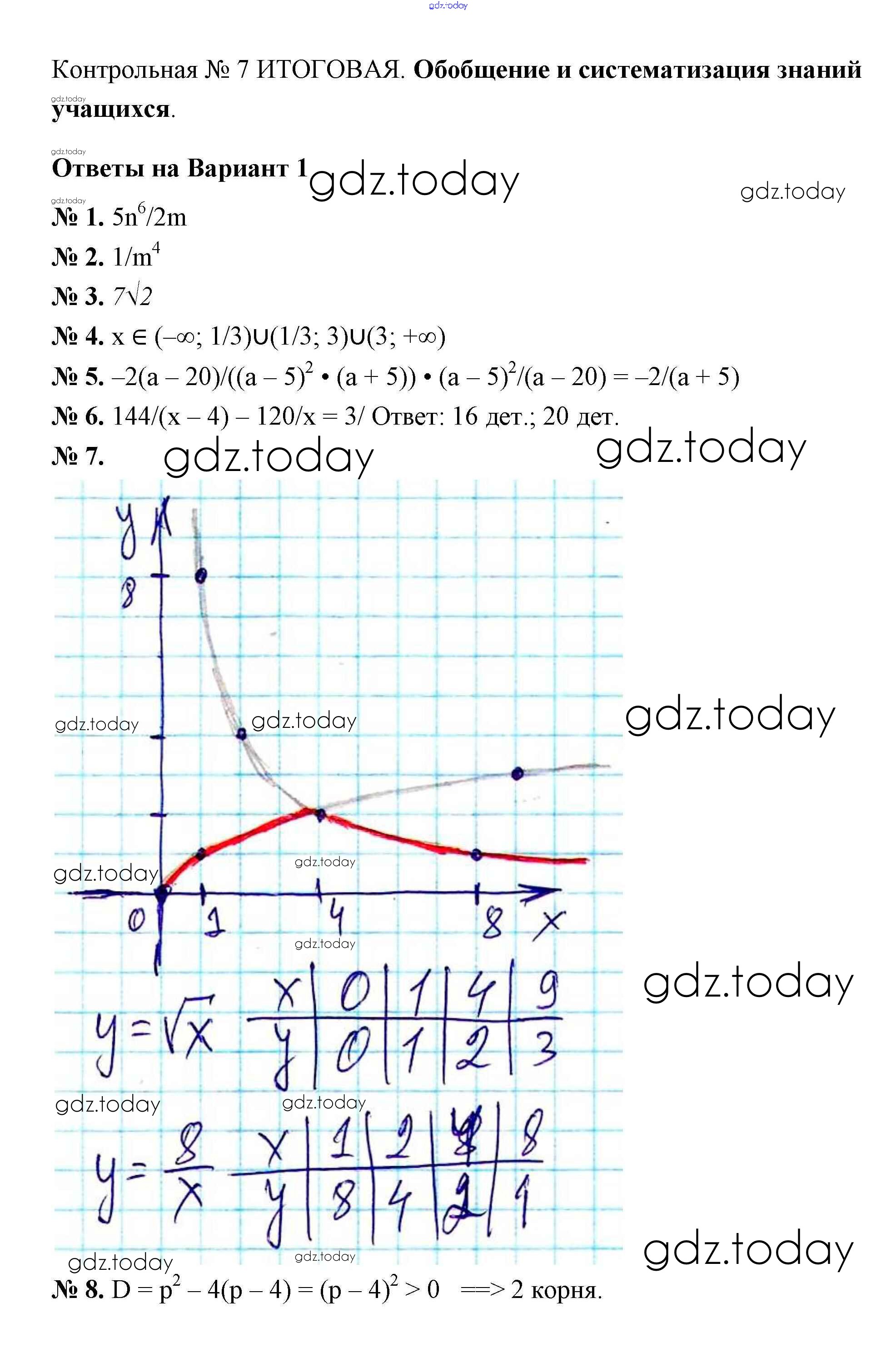 Ответы к КР-7. Обобщение и систематизация знаний учащихся Решение к контрольным работам вариант 1 Дидактическим материалам по Алгебре для 8 класса Мерзляк, Полонский Вентана-граф Алгоритм успеха 2016