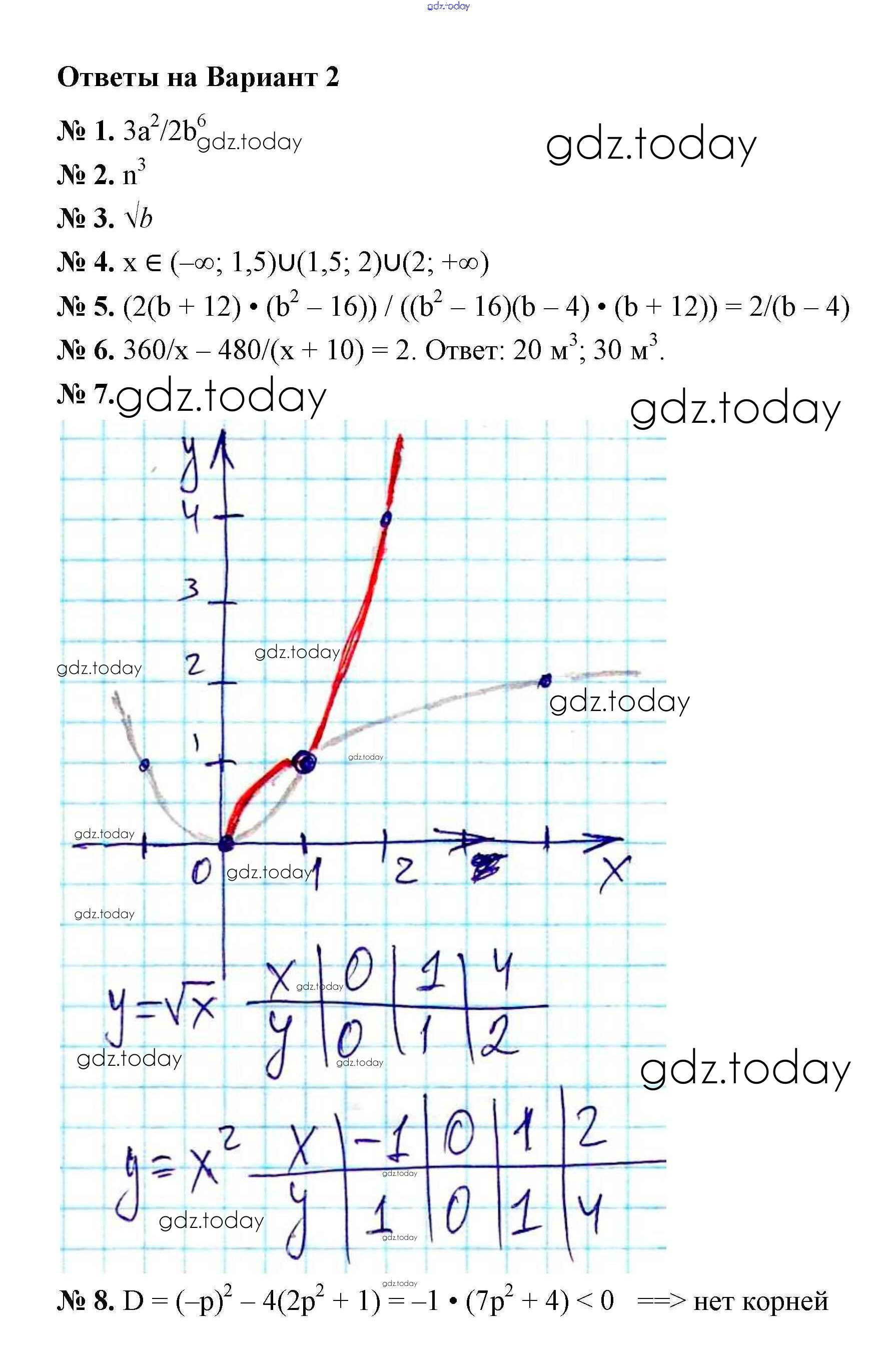 На страницах сайта gdz.today вы найдете учебный и вспомогательный материал, направленный на улучшения знаний школьной программы. ГДЗ - онлайн мир знаний КР-7. Обобщение и систематизация знаний учащихся Решение к контрольным работам вариант 2 Дидактическим материалам по Алгебре для 8 класса Мерзляк, Полонский Вентана-граф Алгоритм успеха 2016