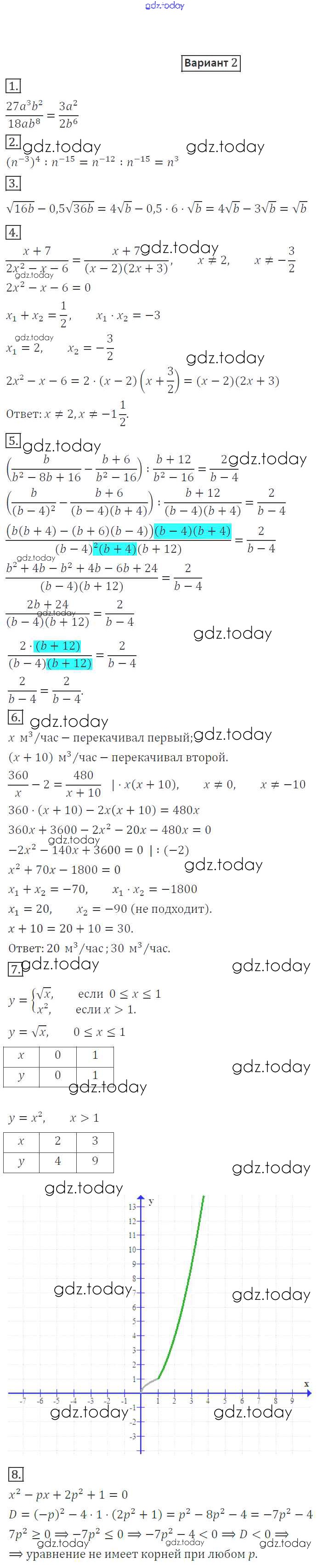 Ответы к КР-7. Обобщение и систематизация знаний учащихся Решение к контрольным работам вариант 2 Дидактическим материалам по Алгебре для 8 класса Мерзляк, Полонский Вентана-граф Алгоритм успеха 2016