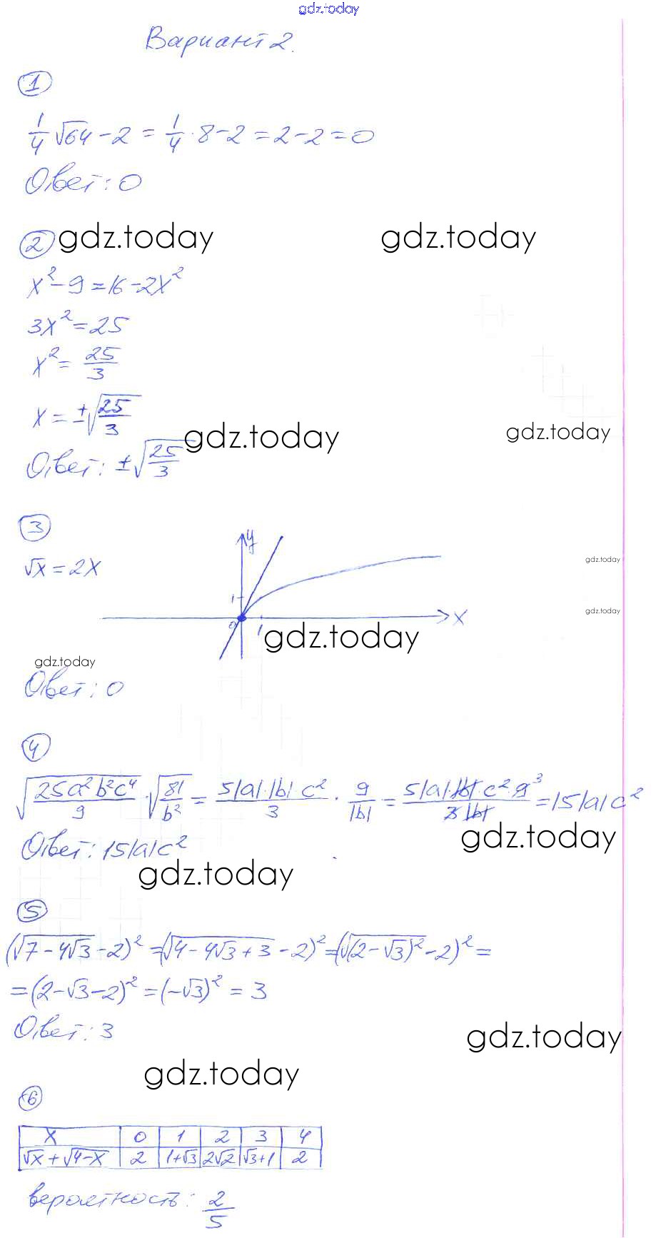 На страницах сайта gdz.today вы найдете учебный и вспомогательный материал, направленный на улучшения знаний школьной программы. ГДЗ - онлайн мир знаний КР-2. Функция y = √x. Свойства квадратного корня Решение к контрольным работам вариант-2 Дидактическим материалам по Алгебре для 8 класса Попов Экзамен УМК 2014
