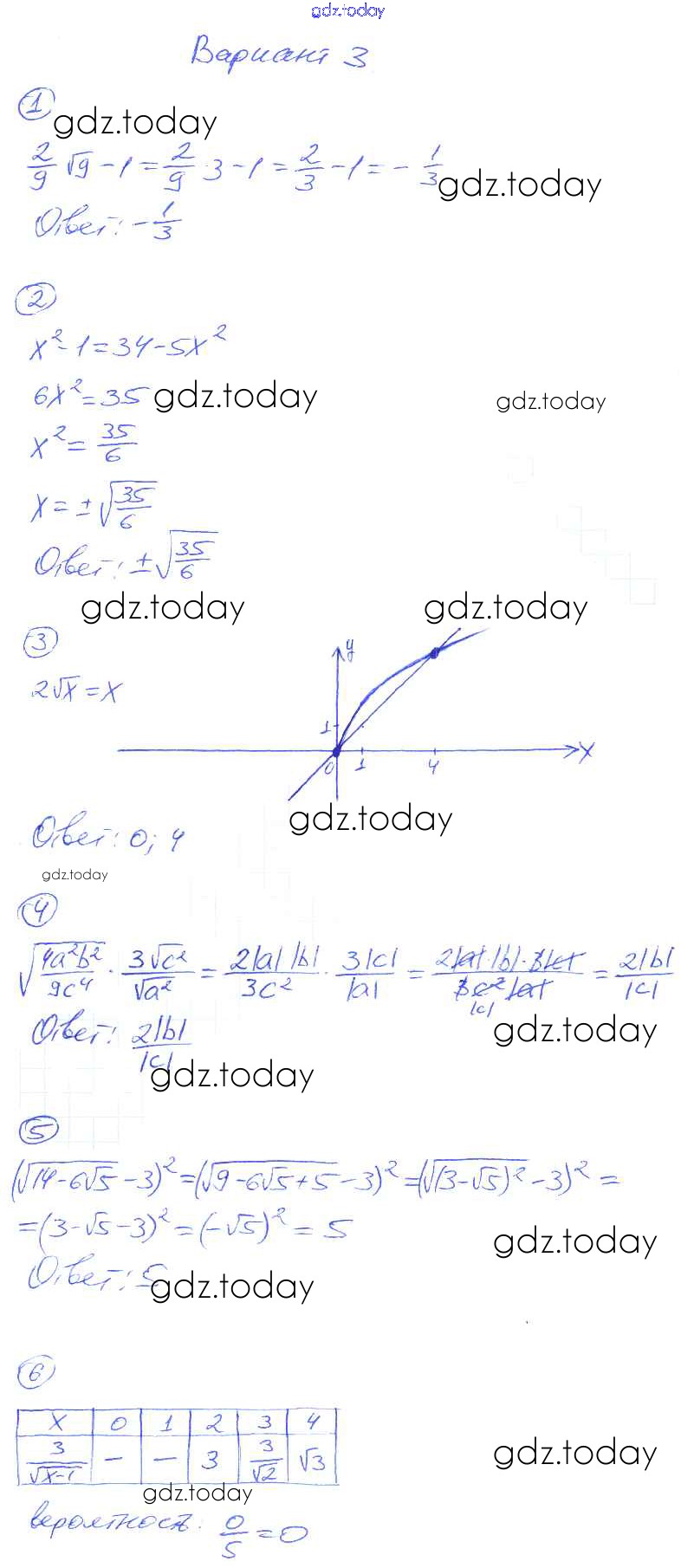 Ответы к КР-2. Функция y = √x. Свойства квадратного корня Решение к контрольным работам вариант-3 Дидактическим материалам по Алгебре для 8 класса Попов Экзамен УМК 2014