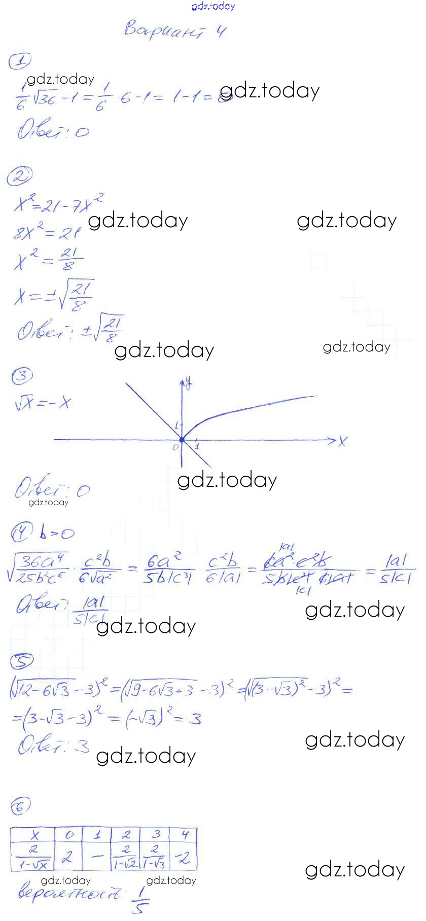 На страницах сайта gdz.today вы найдете учебный и вспомогательный материал, направленный на улучшения знаний школьной программы. ГДЗ - онлайн мир знаний КР-2. Функция y = √x. Свойства квадратного корня Решение к контрольным работам вариант-4 Дидактическим материалам по Алгебре для 8 класса Попов Экзамен УМК 2014