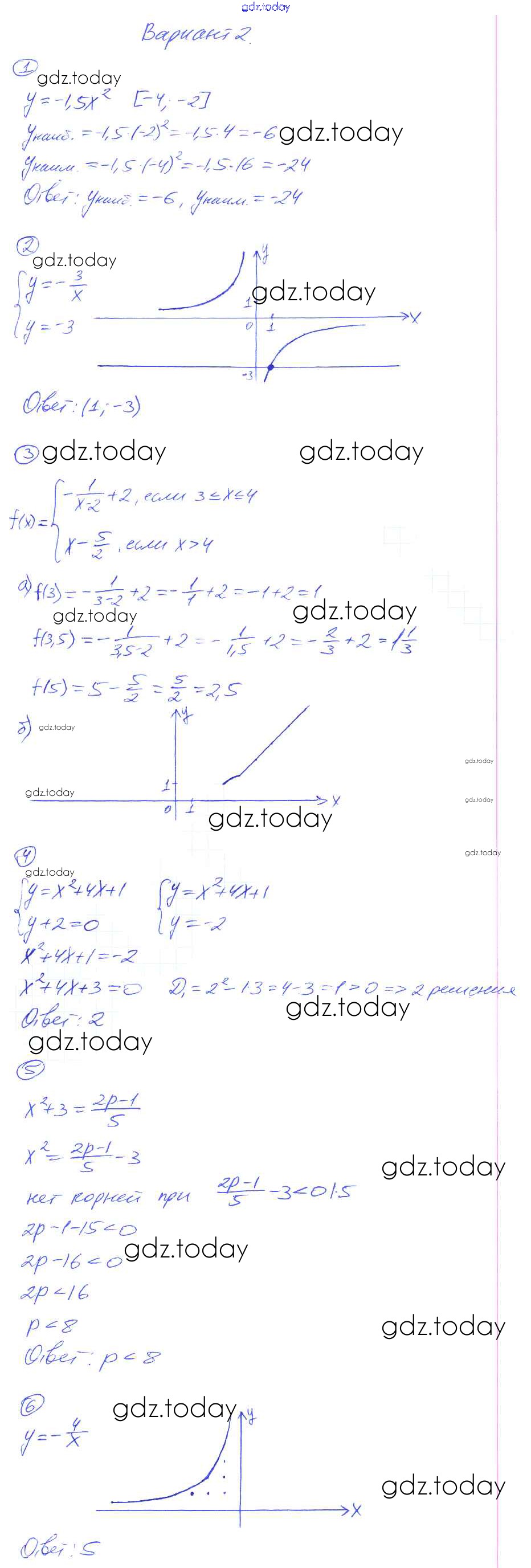 На страницах сайта gdz.today вы найдете учебный и вспомогательный материал, направленный на улучшения знаний школьной программы. ГДЗ - онлайн мир знаний КР-3. Квадратичная функция. Функция y = k:x Решение к контрольным работам вариант-2 Дидактическим материалам по Алгебре для 8 класса Попов Экзамен УМК 2014