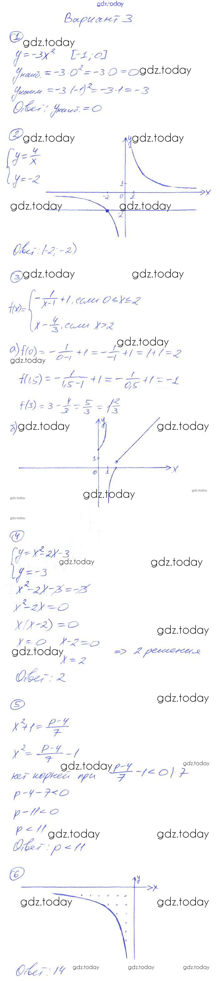 На страницах сайта gdz.today вы найдете учебный и вспомогательный материал, направленный на улучшения знаний школьной программы. ГДЗ - онлайн мир знаний КР-3. Квадратичная функция. Функция y = k:x Решение к контрольным работам вариант-3 Дидактическим материалам по Алгебре для 8 класса Попов Экзамен УМК 2014