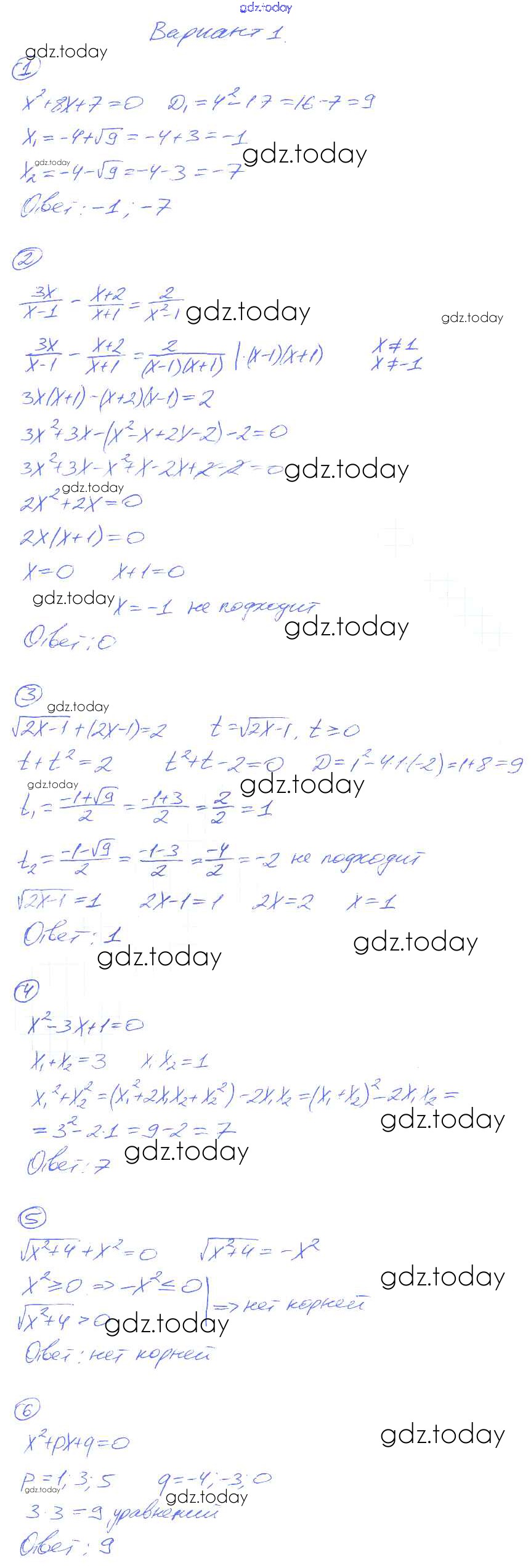 На страницах сайта gdz.today вы найдете учебный и вспомогательный материал, направленный на улучшения знаний школьной программы. ГДЗ - онлайн мир знаний КР-4. Квадратные уравнения Решение к контрольным работам вариант-1 Дидактическим материалам по Алгебре для 8 класса Попов Экзамен УМК 2014