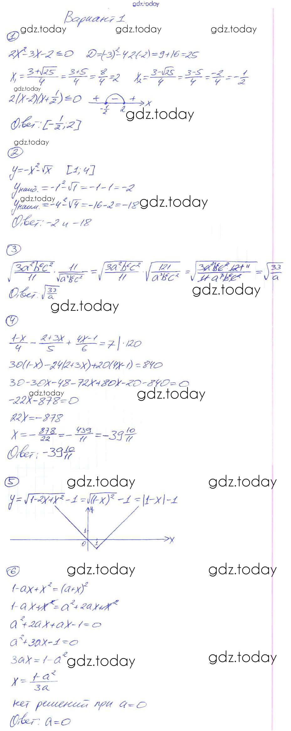 На страницах сайта gdz.today вы найдете учебный и вспомогательный материал, направленный на улучшения знаний школьной программы. ГДЗ - онлайн мир знаний КР-7. Итоговая Решение к контрольным работам вариант-1 Дидактическим материалам по Алгебре для 8 класса Попов Экзамен УМК 2014