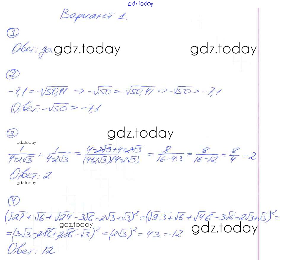 На страницах сайта gdz.today вы найдете учебный и вспомогательный материал, направленный на улучшения знаний школьной программы. ГДЗ - онлайн мир знаний СР-11. Иррациональные числа Решение к самостоятельным работам вариант-1 Дидактическим материалам по Алгебре для 8 класса Попов Экзамен УМК 2014