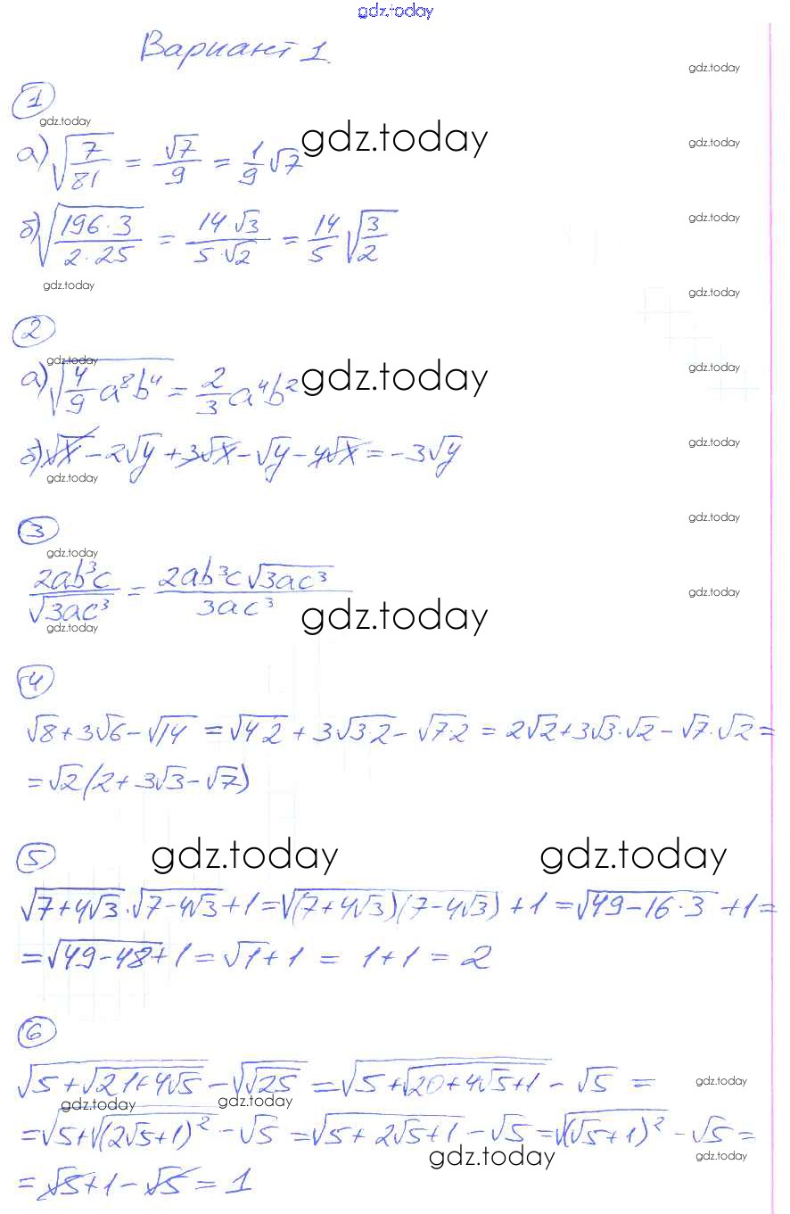 На страницах сайта gdz.today вы найдете учебный и вспомогательный материал, направленный на улучшения знаний школьной программы. ГДЗ - онлайн мир знаний СР-15. Преобразование выражений, содержащих операцию извлечения квадратного корня Решение к самостоятельным работам вариант-1 Дидактическим материалам по Алгебре для 8 класса Попов Экзамен УМК 2014