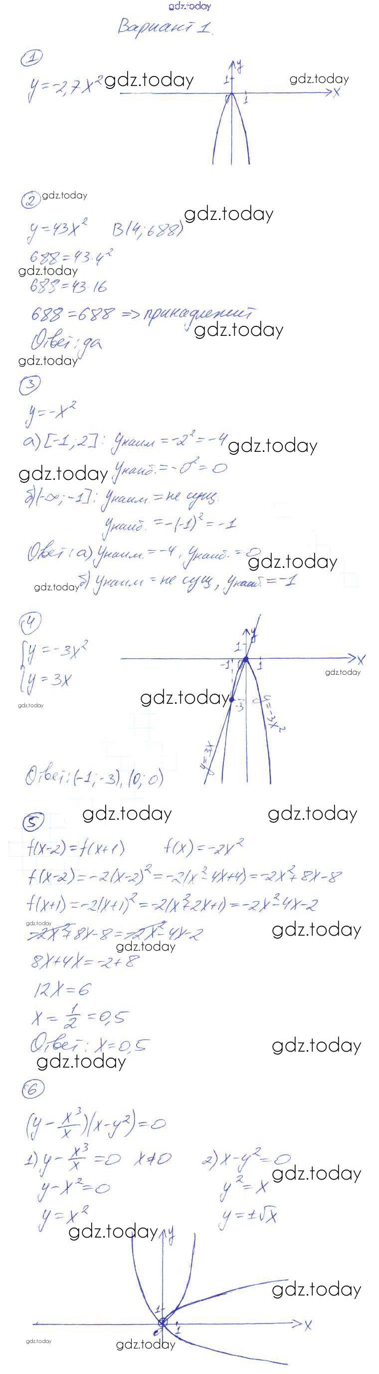 На страницах сайта gdz.today вы найдете учебный и вспомогательный материал, направленный на улучшения знаний школьной программы. ГДЗ - онлайн мир знаний СР-17. Функция y = kx², её свойства и график Решение к самостоятельным работам вариант-1 Дидактическим материалам по Алгебре для 8 класса Попов Экзамен УМК 2014