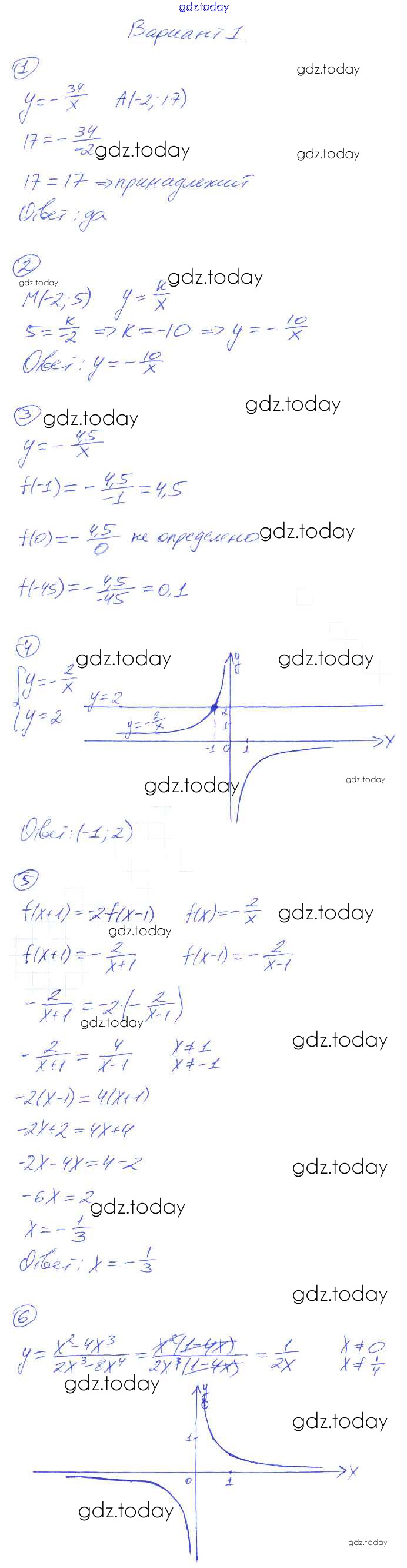 На страницах сайта gdz.today вы найдете учебный и вспомогательный материал, направленный на улучшения знаний школьной программы. ГДЗ - онлайн мир знаний СР-18. Функция y = k:x, её свойства и график Решение к самостоятельным работам вариант-1 Дидактическим материалам по Алгебре для 8 класса Попов Экзамен УМК 2014