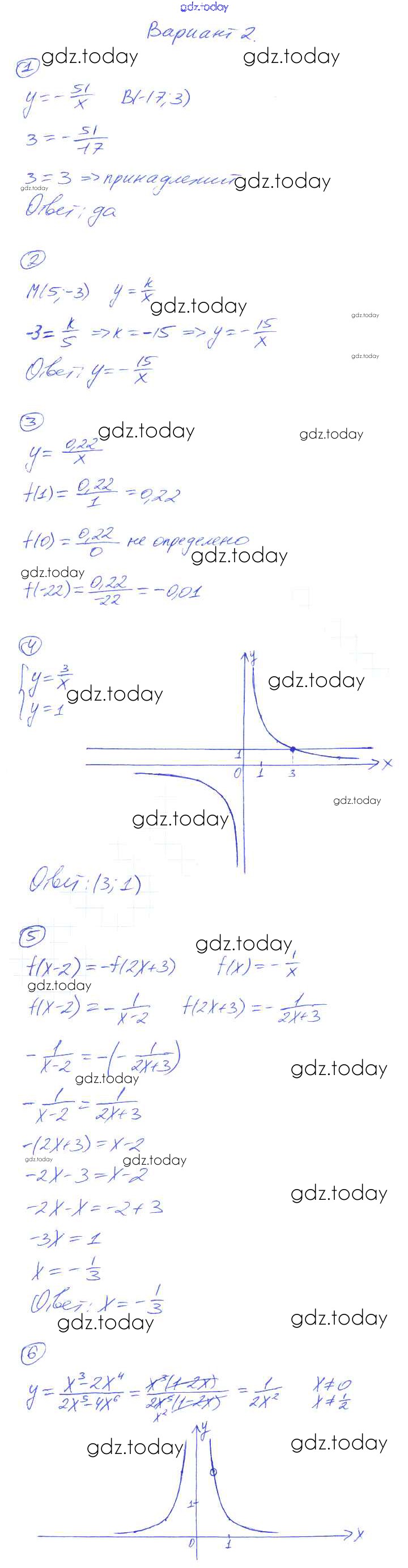 На страницах сайта gdz.today вы найдете учебный и вспомогательный материал, направленный на улучшения знаний школьной программы. ГДЗ - онлайн мир знаний СР-18. Функция y = k:x, её свойства и график Решение к самостоятельным работам вариант-2 Дидактическим материалам по Алгебре для 8 класса Попов Экзамен УМК 2014