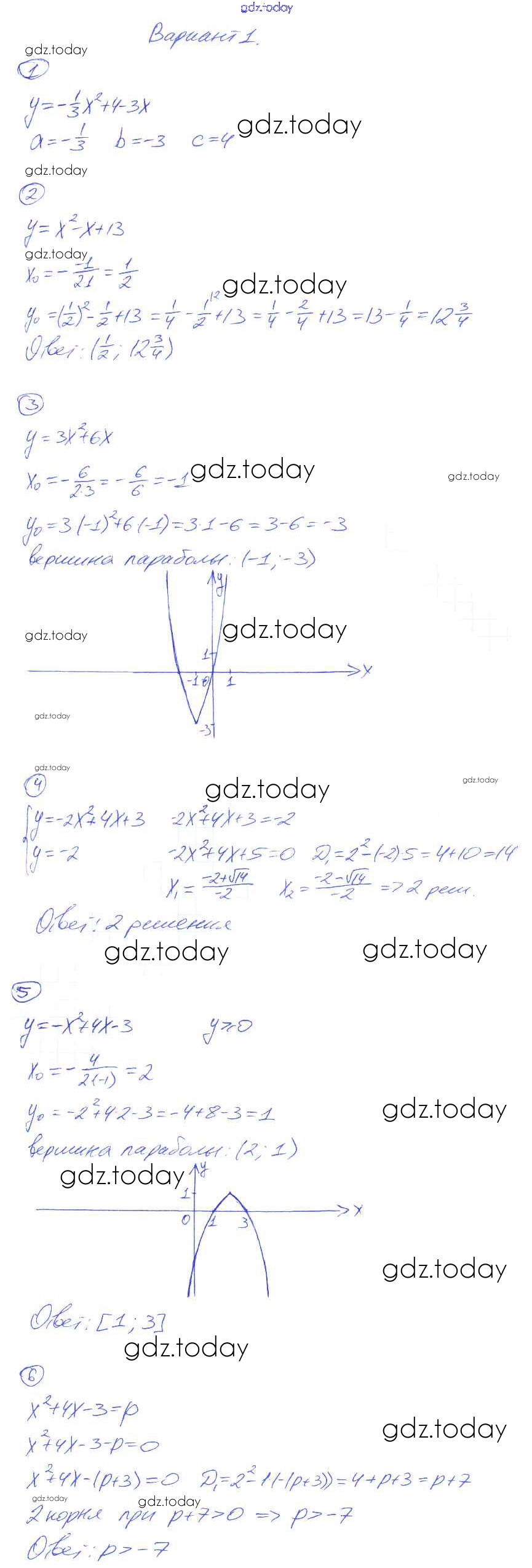 На страницах сайта gdz.today вы найдете учебный и вспомогательный материал, направленный на улучшения знаний школьной программы. ГДЗ - онлайн мир знаний СР-22. Функция y = ax² + bx + c, её свойства и график Решение к самостоятельным работам вариант-1 Дидактическим материалам по Алгебре для 8 класса Попов Экзамен УМК 2014