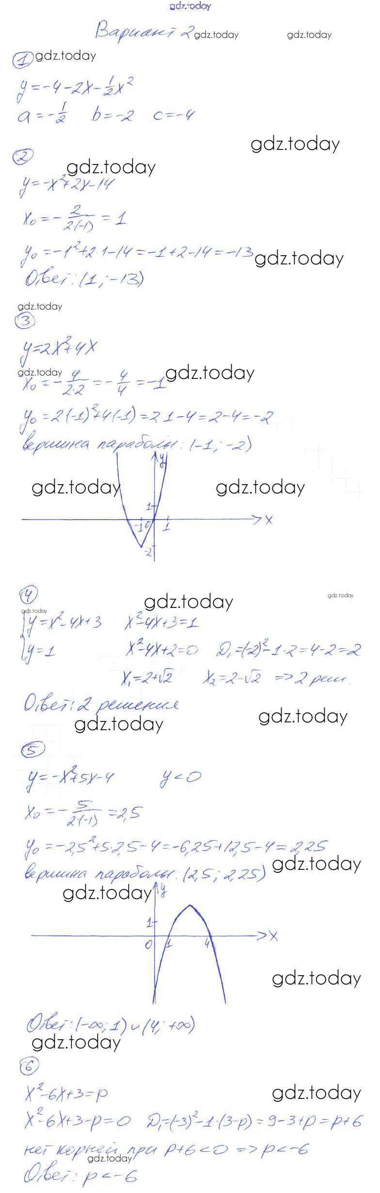 На страницах сайта gdz.today вы найдете учебный и вспомогательный материал, направленный на улучшения знаний школьной программы. ГДЗ - онлайн мир знаний СР-22. Функция y = ax² + bx + c, её свойства и график Решение к самостоятельным работам вариант-2 Дидактическим материалам по Алгебре для 8 класса Попов Экзамен УМК 2014