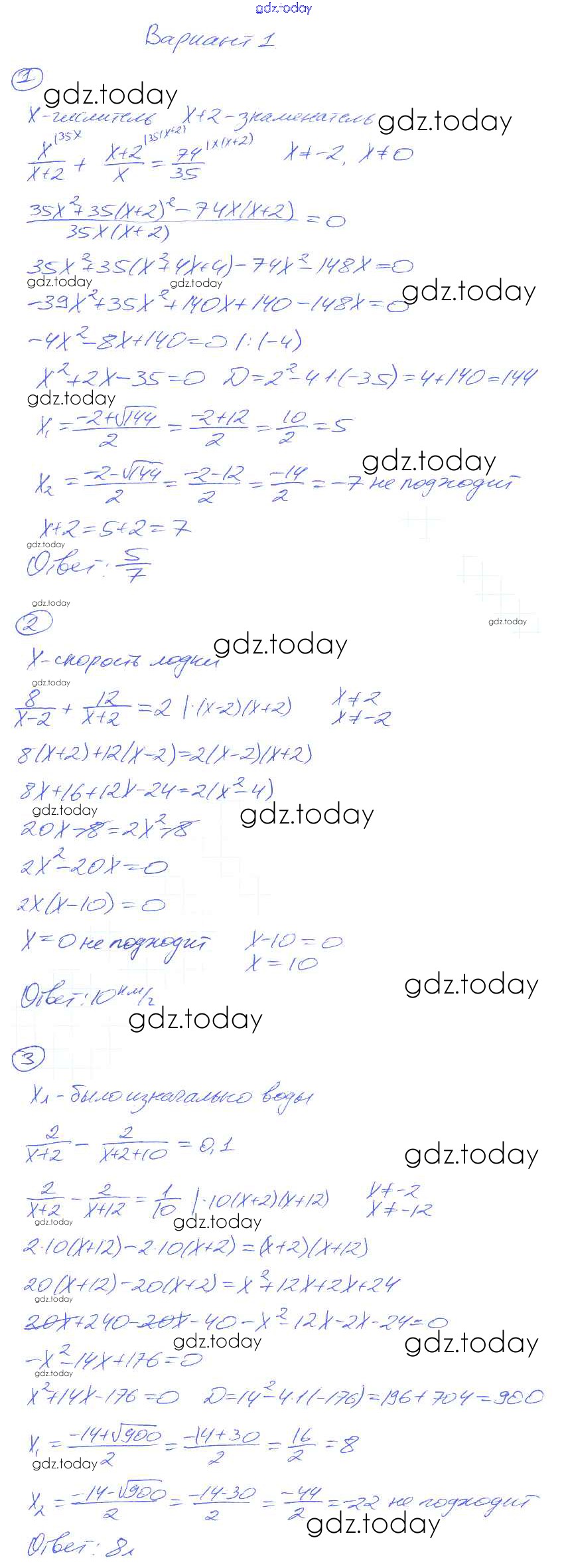 На страницах сайта gdz.today вы найдете учебный и вспомогательный материал, направленный на улучшения знаний школьной программы. ГДЗ - онлайн мир знаний СР-27. Рациональные уравнения как математические модели реальных ситуаций Решение к самостоятельным работам вариант-1 Дидактическим материалам по Алгебре для 8 класса Попов Экзамен УМК 2014