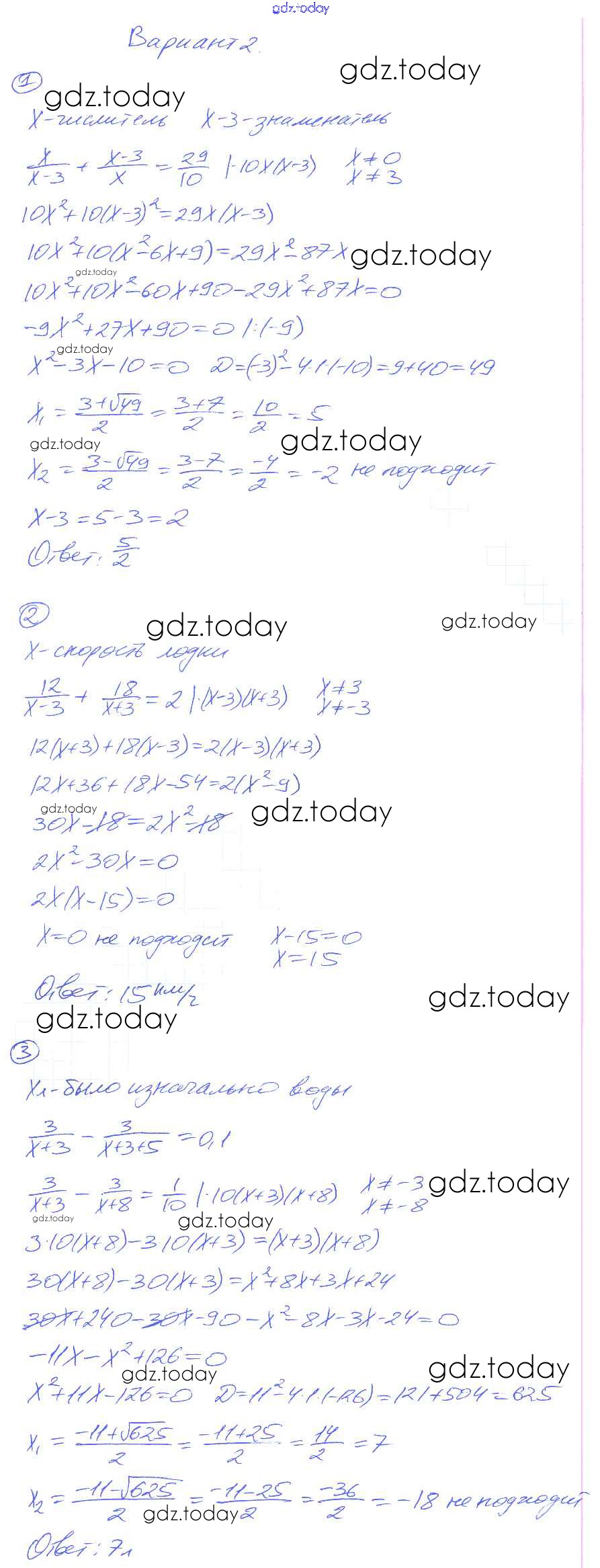 На страницах сайта gdz.today вы найдете учебный и вспомогательный материал, направленный на улучшения знаний школьной программы. ГДЗ - онлайн мир знаний СР-27. Рациональные уравнения как математические модели реальных ситуаций Решение к самостоятельным работам вариант-2 Дидактическим материалам по Алгебре для 8 класса Попов Экзамен УМК 2014