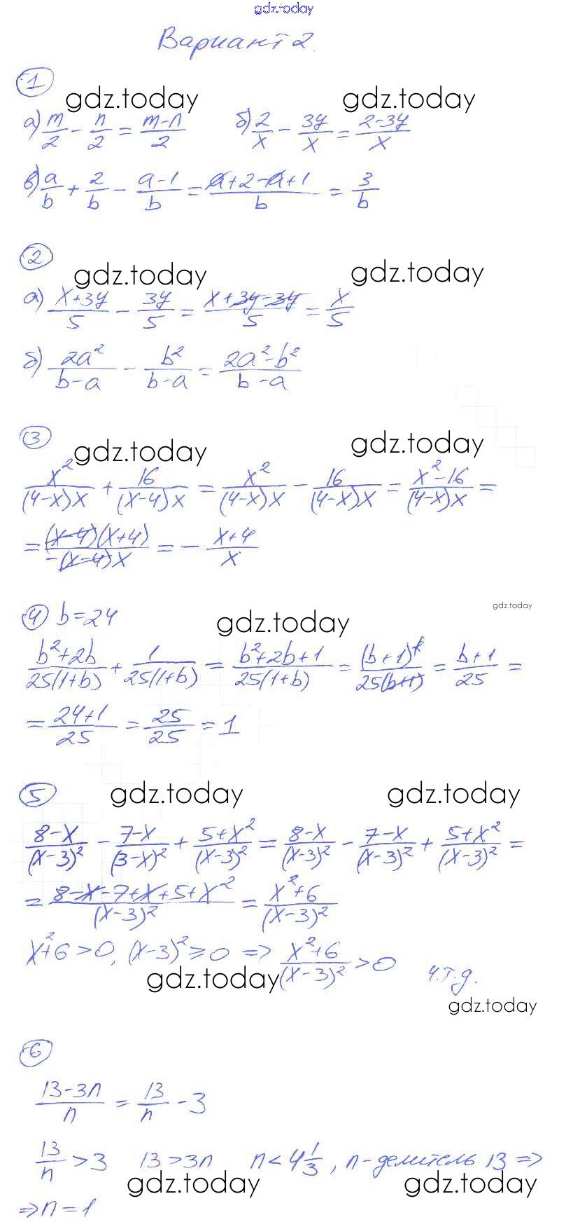 Ответы к СР-3. Сложение и вычитание алгебраических дробей с одинаковыми знаменателями Решение к самостоятельным работам вариант-2 Дидактическим материалам по Алгебре для 8 класса Попов Экзамен УМК 2014