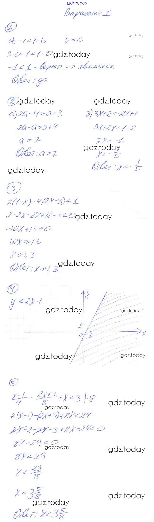 На страницах сайта gdz.today вы найдете учебный и вспомогательный материал, направленный на улучшения знаний школьной программы. ГДЗ - онлайн мир знаний СР-33. Решение линейных неравенств Решение к самостоятельным работам вариант-1 Дидактическим материалам по Алгебре для 8 класса Попов Экзамен УМК 2014