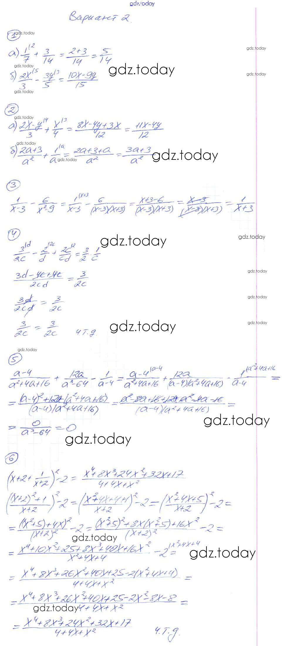 На страницах сайта gdz.today вы найдете учебный и вспомогательный материал, направленный на улучшения знаний школьной программы. ГДЗ - онлайн мир знаний СР-4. Сложение и вычитание алгебраических дробей с разными знаменателями Решение к самостоятельным работам вариант-2 Дидактическим материалам по Алгебре для 8 класса Попов Экзамен УМК 2014