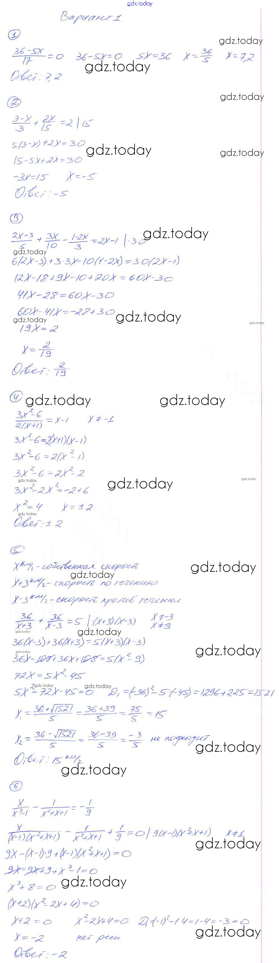 Ответы к СР-7. Первые представления о рациональных уравнениях Решение к самостоятельным работам вариант-1 Дидактическим материалам по Алгебре для 8 класса Попов Экзамен УМК 2014