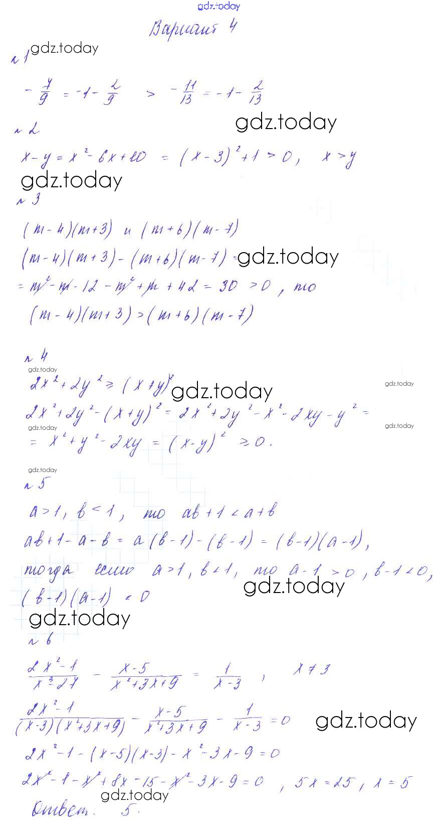 Ответы к СР №1. Положительные и отрицательные числа. Числовые неравенства Решение к самостоятельным работам Вариант-4 Дидактическим материалам по Алгебре для 8 класса Зив, Гольдич Виктория плюс 2012