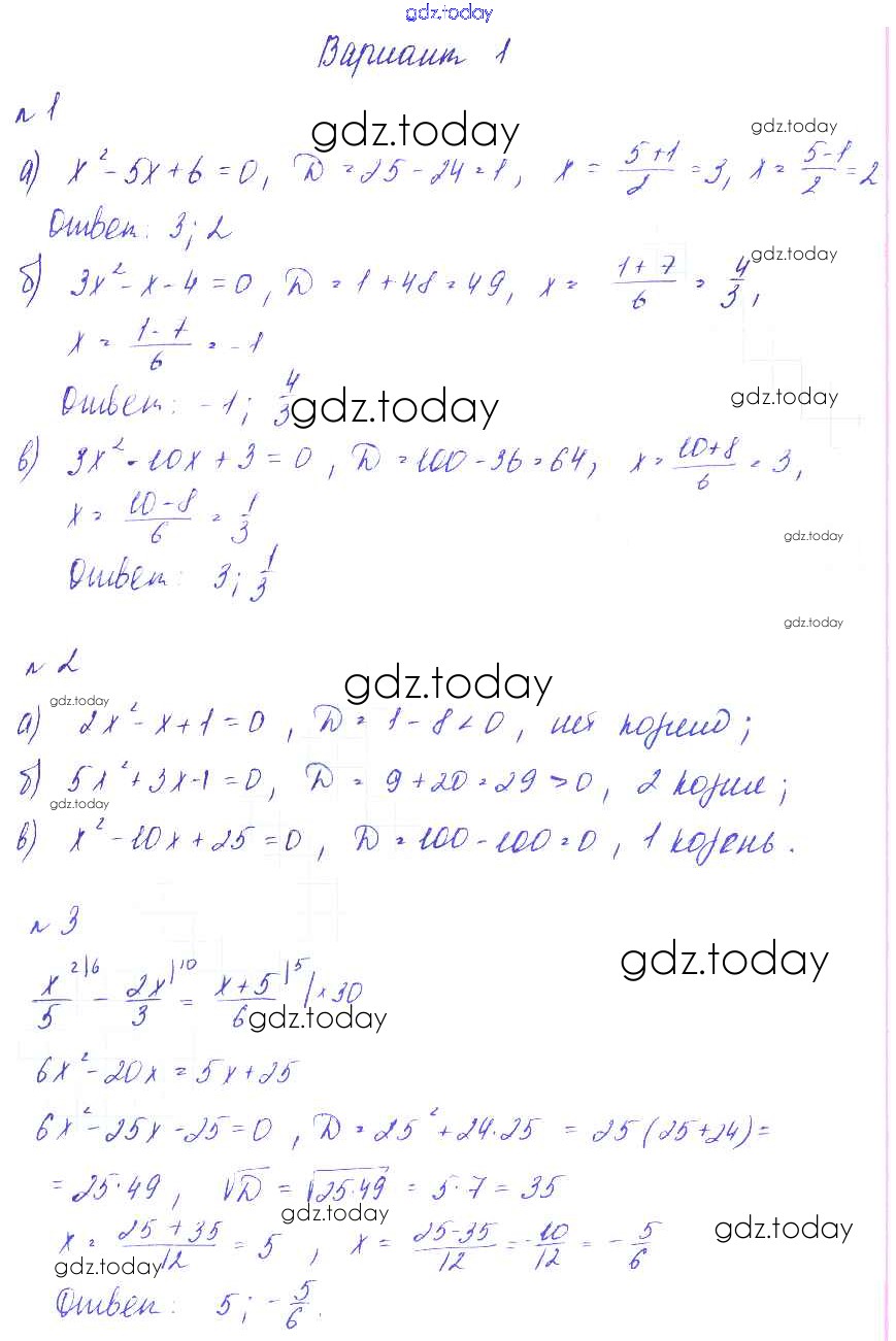 Ответы к СР №10. Решение квадратных уравнений Решение к самостоятельным работам Вариант-1 Дидактическим материалам по Алгебре для 8 класса Зив, Гольдич Виктория плюс 2012