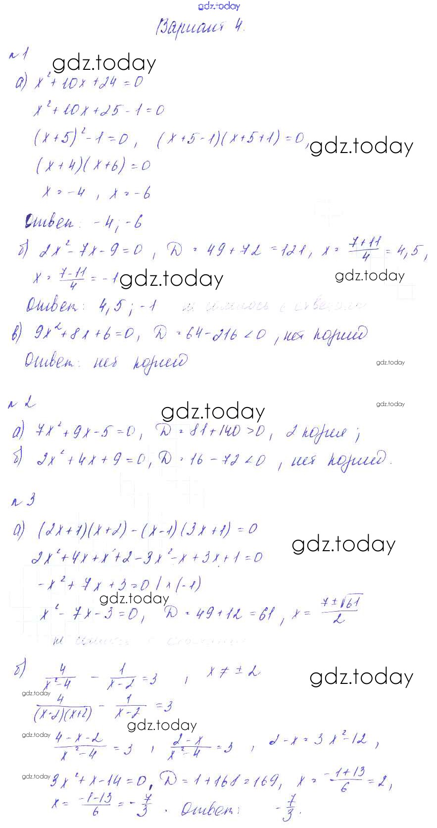 Ответы к СР №10. Решение квадратных уравнений Решение к самостоятельным работам Вариант-4 Дидактическим материалам по Алгебре для 8 класса Зив, Гольдич Виктория плюс 2012