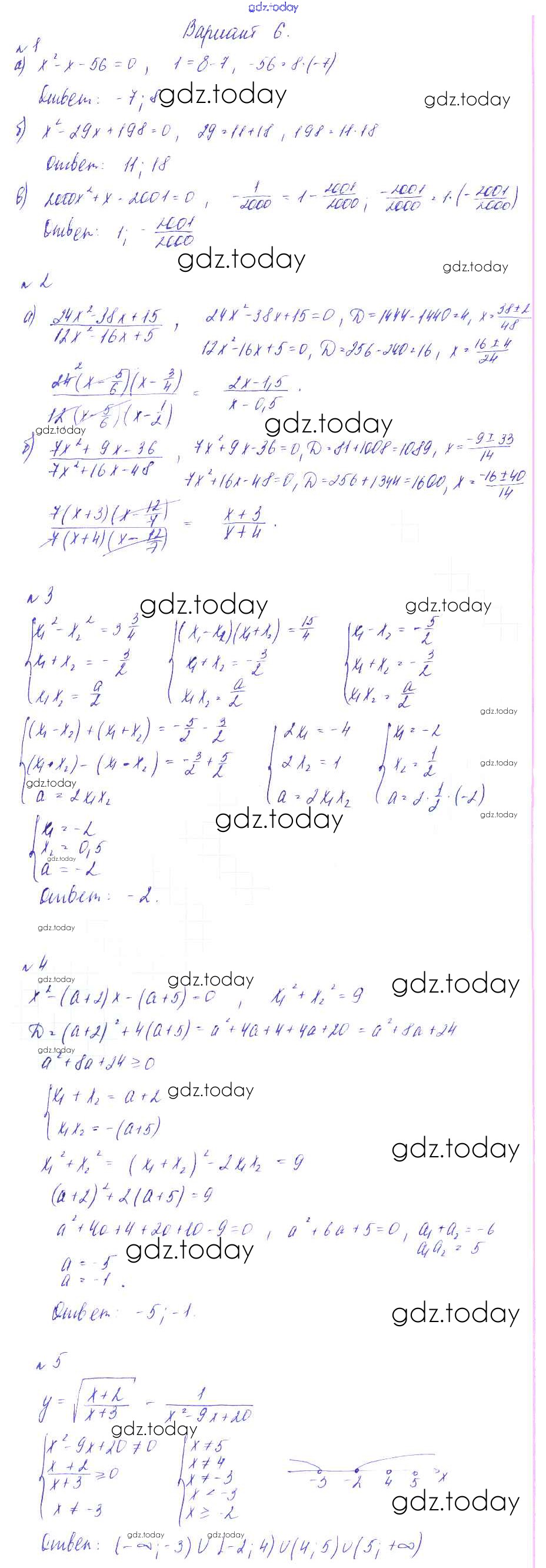 На страницах сайта gdz.today вы найдете учебный и вспомогательный материал, направленный на улучшения знаний школьной программы. ГДЗ - онлайн мир знаний СР №11. Теорема Виета Решение к самостоятельным работам Вариант-6 Дидактическим материалам по Алгебре для 8 класса Зив, Гольдич Виктория плюс 2012
