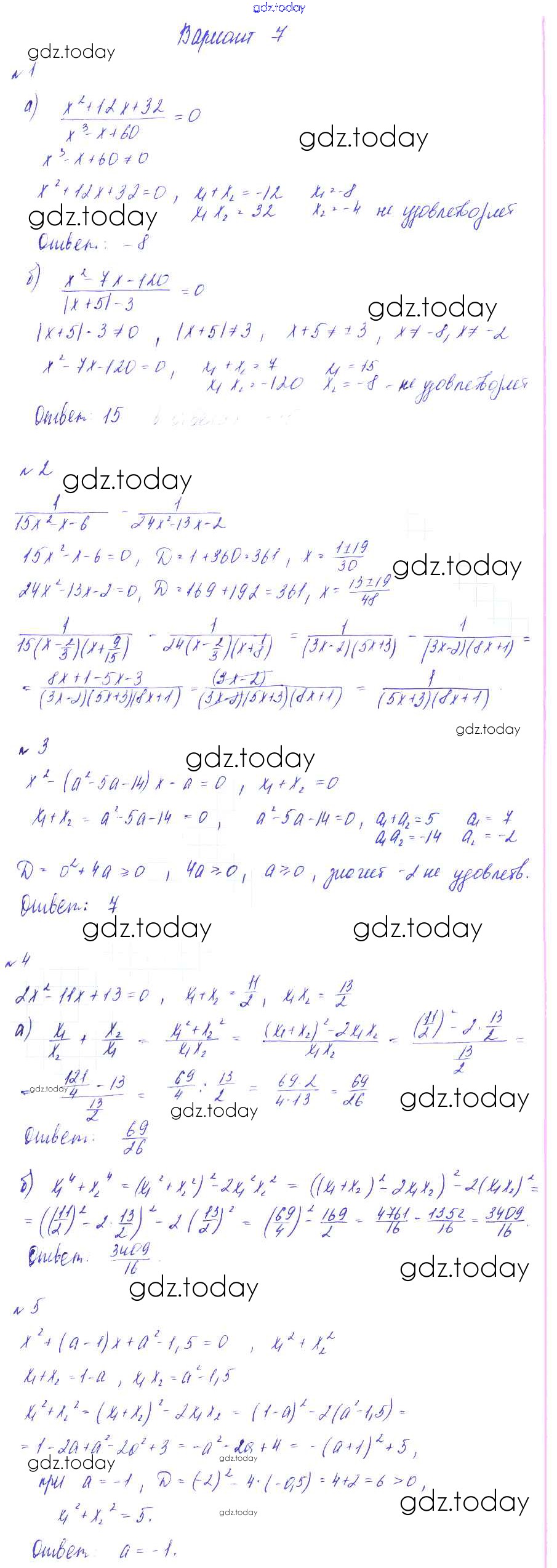 На страницах сайта gdz.today вы найдете учебный и вспомогательный материал, направленный на улучшения знаний школьной программы. ГДЗ - онлайн мир знаний СР №11. Теорема Виета Решение к самостоятельным работам Вариант-7 Дидактическим материалам по Алгебре для 8 класса Зив, Гольдич Виктория плюс 2012