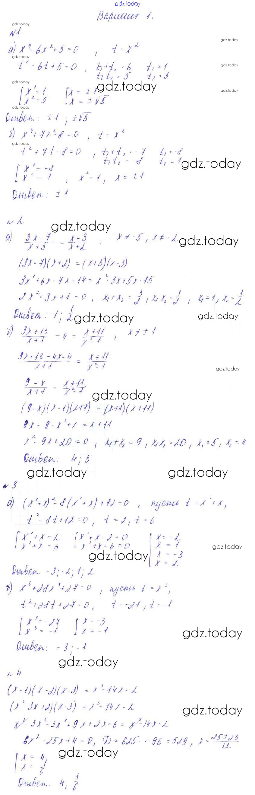 На страницах сайта gdz.today вы найдете учебный и вспомогательный материал, направленный на улучшения знаний школьной программы. ГДЗ - онлайн мир знаний СР №12. Уравнения, сводящиеся к квадратным Решение к самостоятельным работам Вариант-1 Дидактическим материалам по Алгебре для 8 класса Зив, Гольдич Виктория плюс 2012