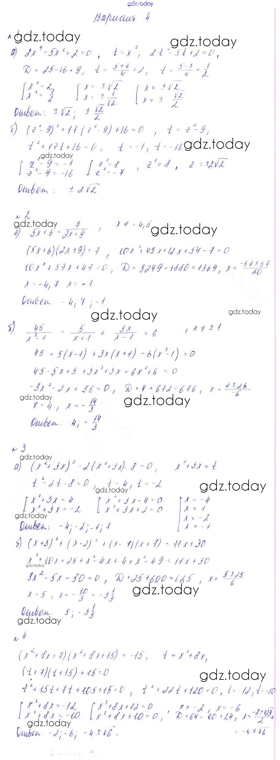 На страницах сайта gdz.today вы найдете учебный и вспомогательный материал, направленный на улучшения знаний школьной программы. ГДЗ - онлайн мир знаний СР №12. Уравнения, сводящиеся к квадратным Решение к самостоятельным работам Вариант-4 Дидактическим материалам по Алгебре для 8 класса Зив, Гольдич Виктория плюс 2012