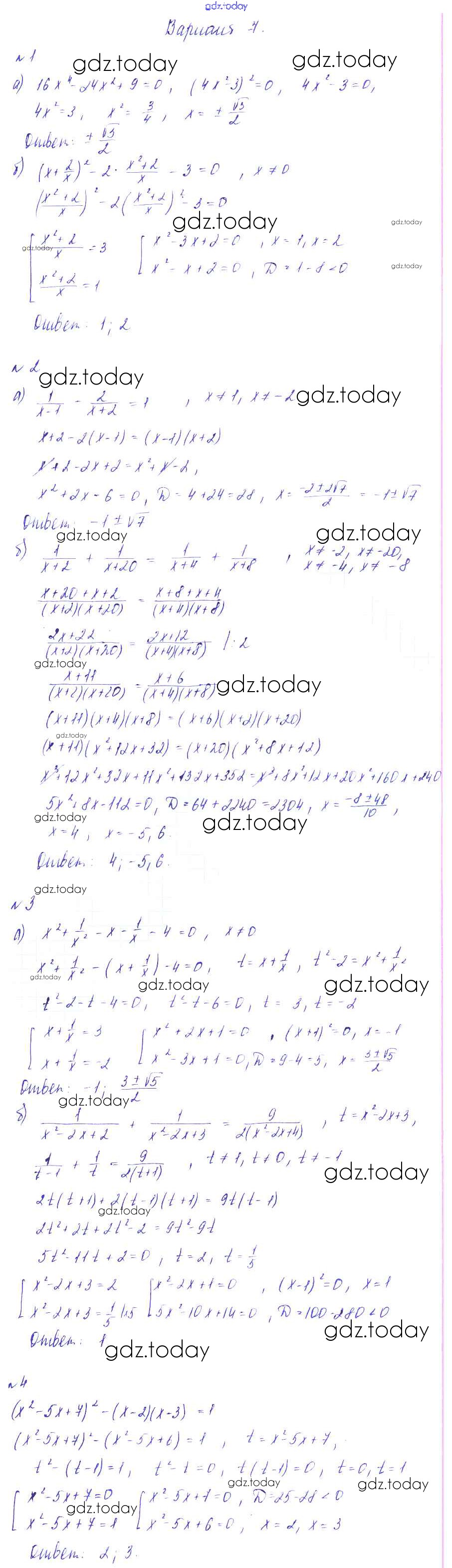 На страницах сайта gdz.today вы найдете учебный и вспомогательный материал, направленный на улучшения знаний школьной программы. ГДЗ - онлайн мир знаний СР №12. Уравнения, сводящиеся к квадратным Решение к самостоятельным работам Вариант-7 Дидактическим материалам по Алгебре для 8 класса Зив, Гольдич Виктория плюс 2012