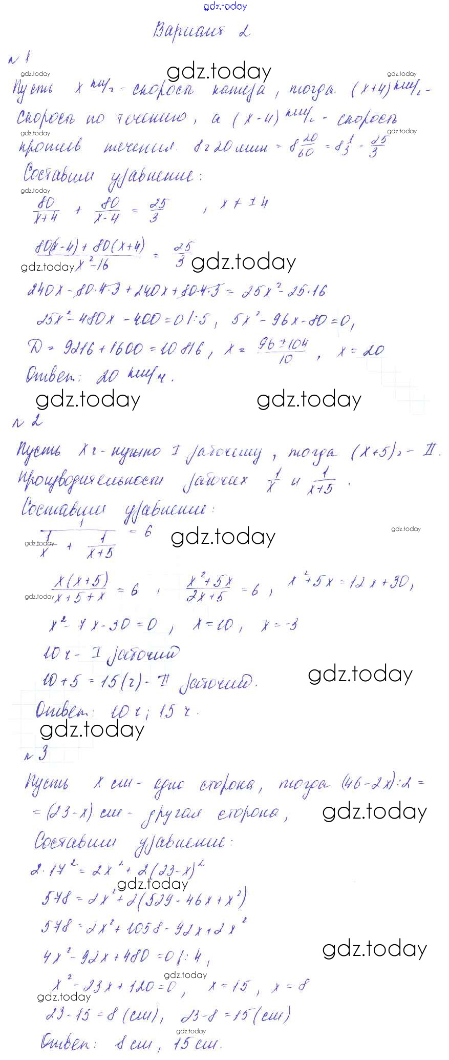 Ответы к СР №13. Решение задач с помощью квадратных уравнений Решение к самостоятельным работам Вариант-2 Дидактическим материалам по Алгебре для 8 класса Зив, Гольдич Виктория плюс 2012
