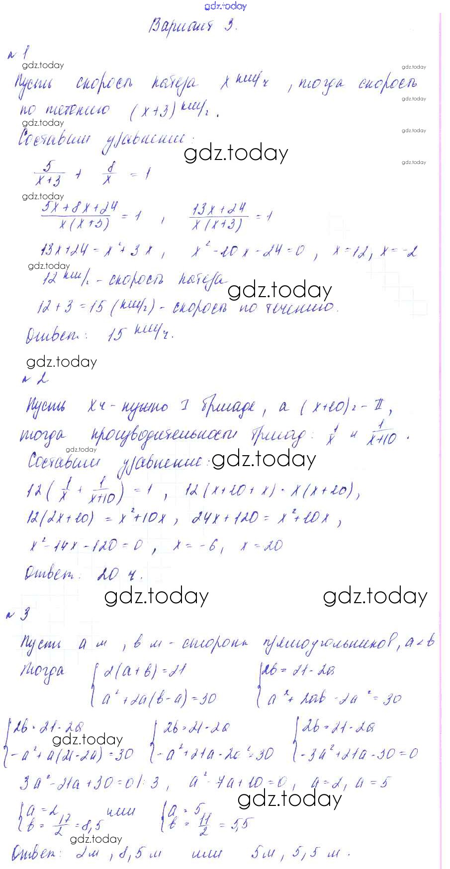 Ответы к СР №13. Решение задач с помощью квадратных уравнений Решение к самостоятельным работам Вариант-3 Дидактическим материалам по Алгебре для 8 класса Зив, Гольдич Виктория плюс 2012