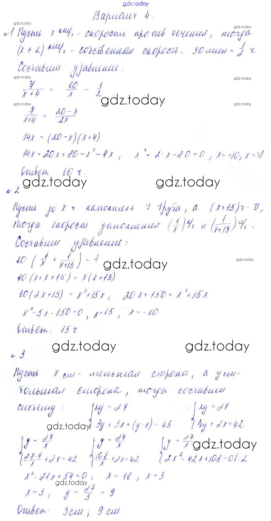 Ответы к СР №13. Решение задач с помощью квадратных уравнений Решение к самостоятельным работам Вариант-4 Дидактическим материалам по Алгебре для 8 класса Зив, Гольдич Виктория плюс 2012