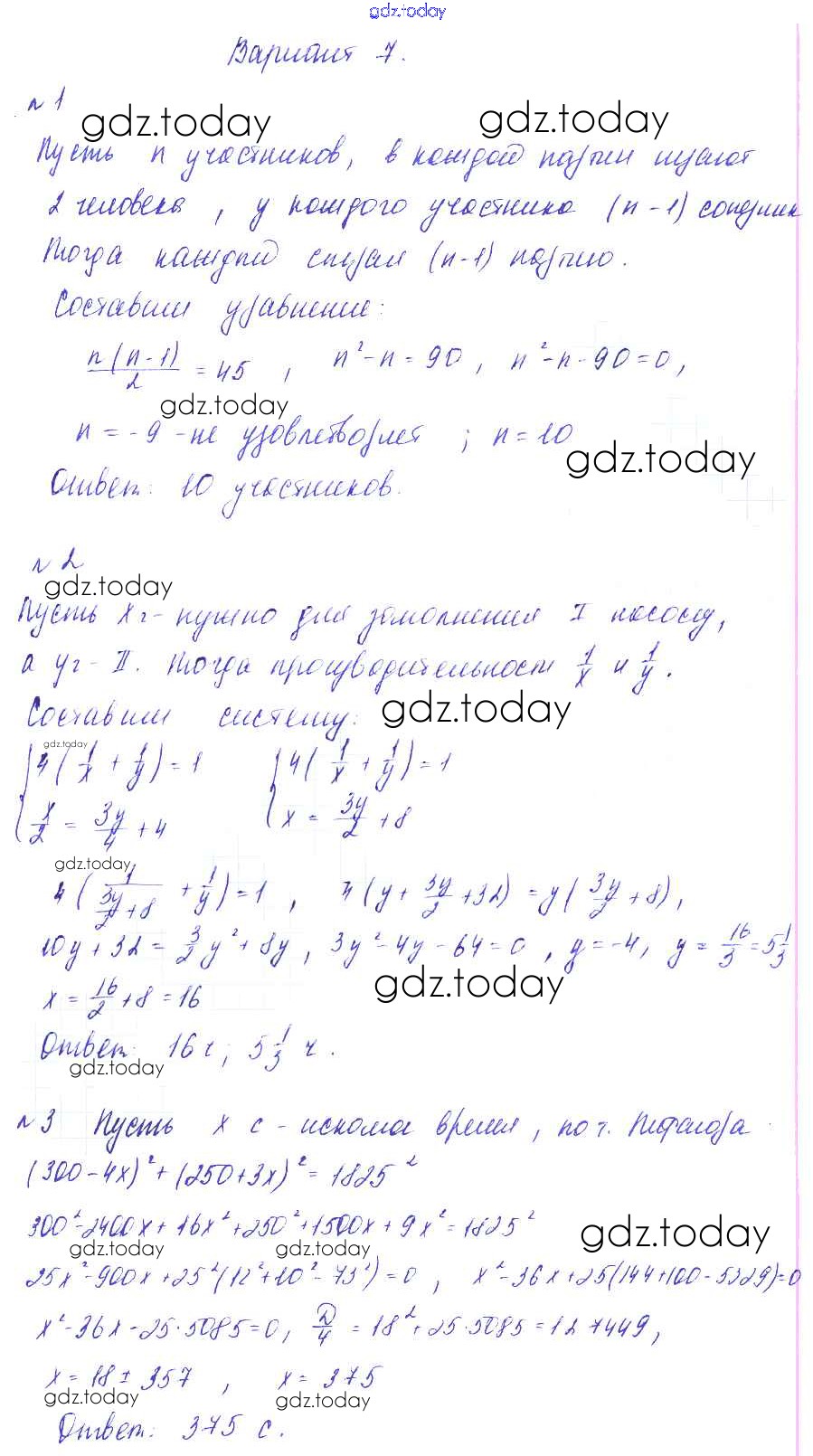 Ответы к СР №13. Решение задач с помощью квадратных уравнений Решение к самостоятельным работам Вариант-7 Дидактическим материалам по Алгебре для 8 класса Зив, Гольдич Виктория плюс 2012