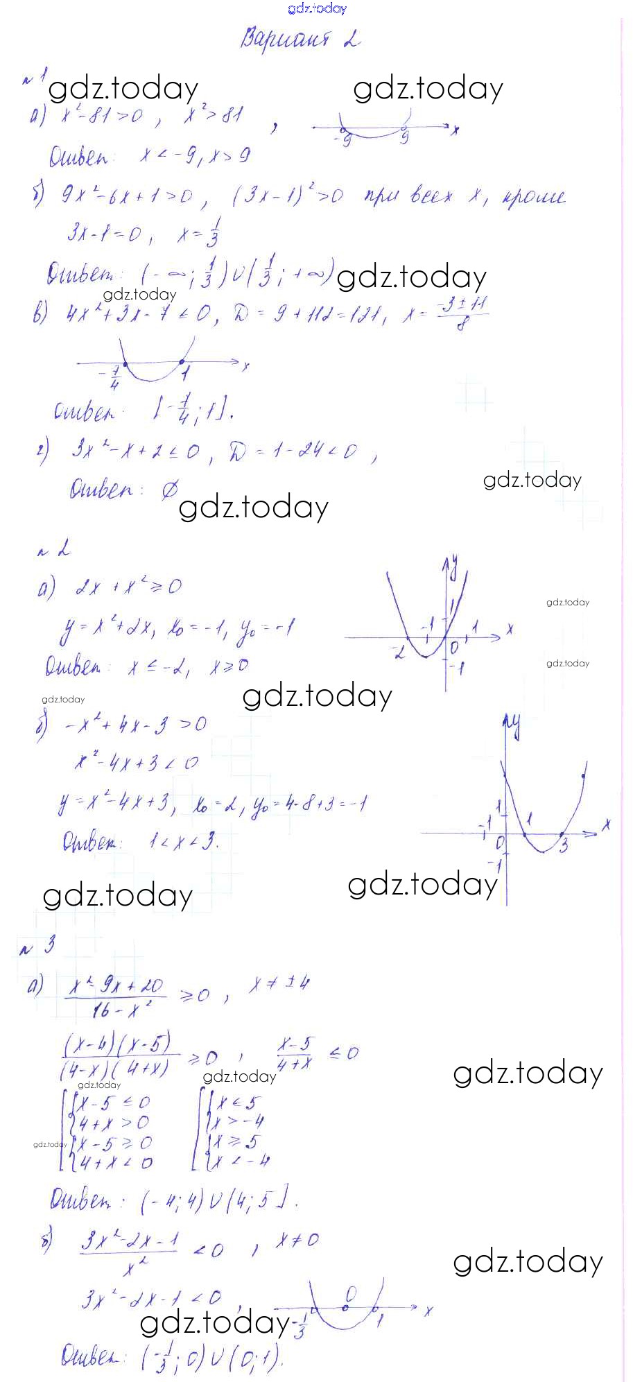 Ответы к СР №16. Метод интервалов Решение к самостоятельным работам Вариант-2 Дидактическим материалам по Алгебре для 8 класса Зив, Гольдич Виктория плюс 2012