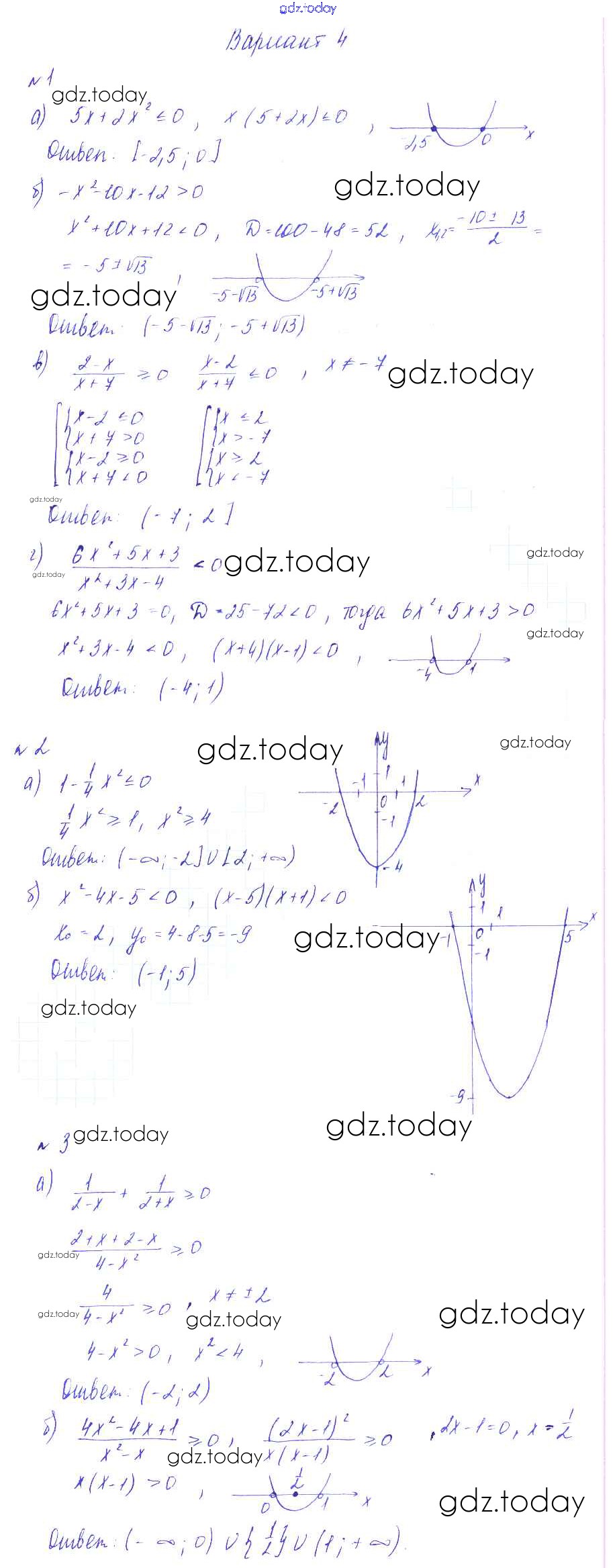 Ответы к СР №16. Метод интервалов Решение к самостоятельным работам Вариант-4 Дидактическим материалам по Алгебре для 8 класса Зив, Гольдич Виктория плюс 2012