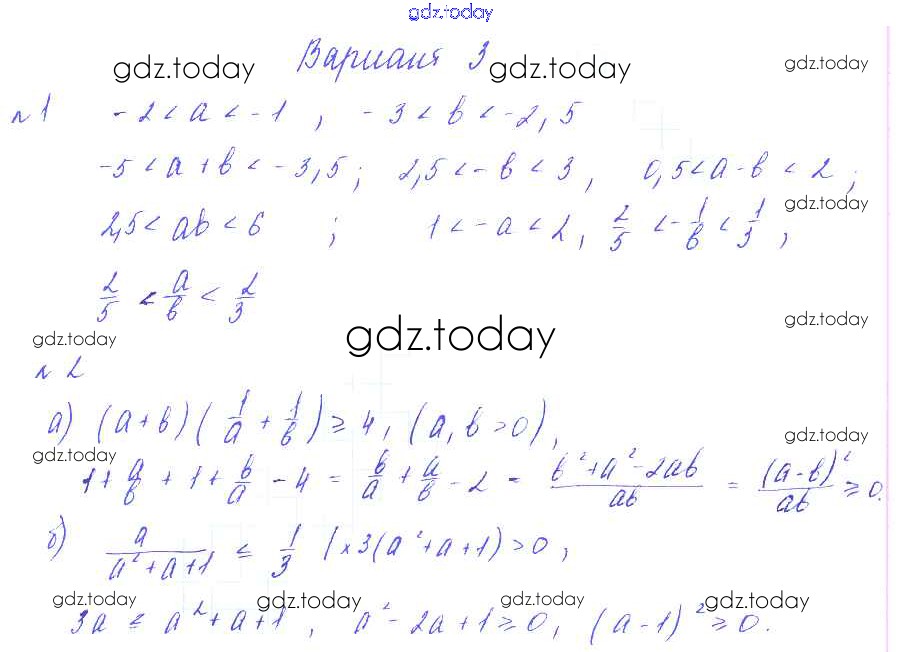 Ответы к СР №2. Свойства числовых неравенств. Сложение и умножение неравенств Решение к самостоятельным работам Вариант-3 Дидактическим материалам по Алгебре для 8 класса Зив, Гольдич Виктория плюс 2012