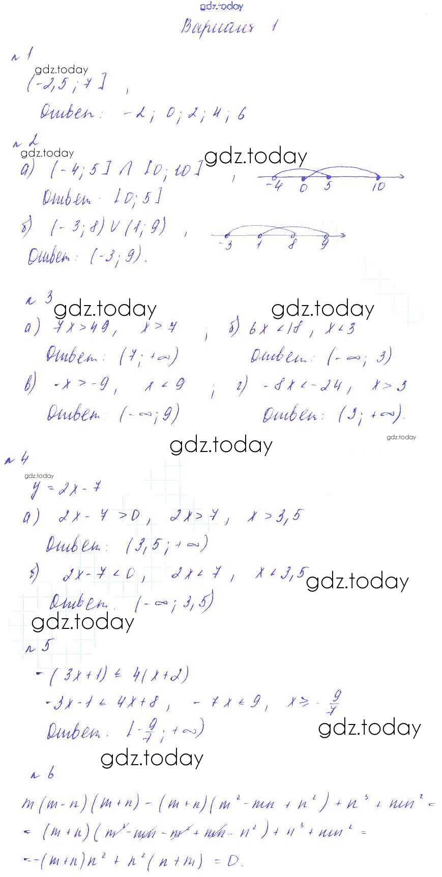Ответы к СР №3. Решение неравенств. Числовые промежутки Решение к самостоятельным работам Вариант-1 Дидактическим материалам по Алгебре для 8 класса Зив, Гольдич Виктория плюс 2012