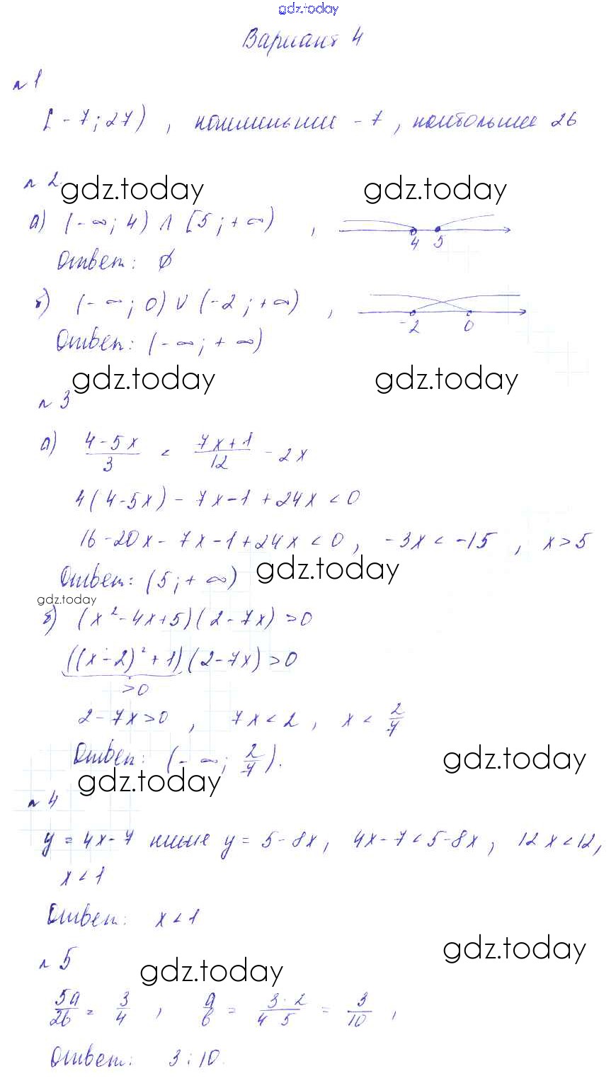 Ответы к СР №3. Решение неравенств. Числовые промежутки Решение к самостоятельным работам Вариант-4 Дидактическим материалам по Алгебре для 8 класса Зив, Гольдич Виктория плюс 2012
